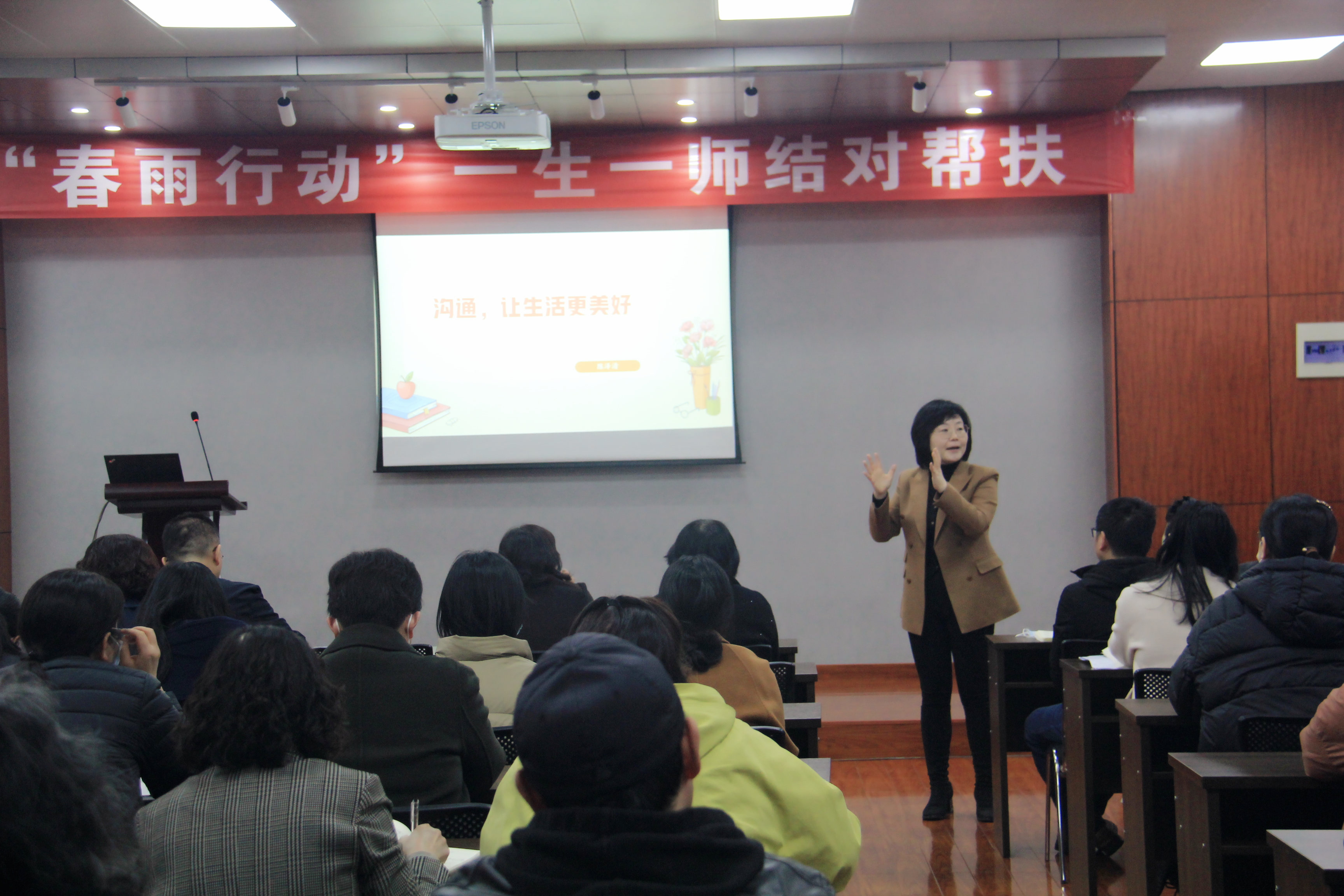本次培训会特邀国家二级心理咨询师、全国心理健康课一等奖获得者、金水区教育局教育科副科长陈泽清为49中全体教师做专题辅导讲座。陈老师以《沟通,让生活更美好》为主题,从萨提亚沟通模式入手,让与会教师切实地感受到一致性沟通的重要性并细致的向老师们讲授了一致性沟通的关键步骤。老师们纷纷表示本次培训收获良多,并表示会将本次所学运用到本年度的春雨行动中去。