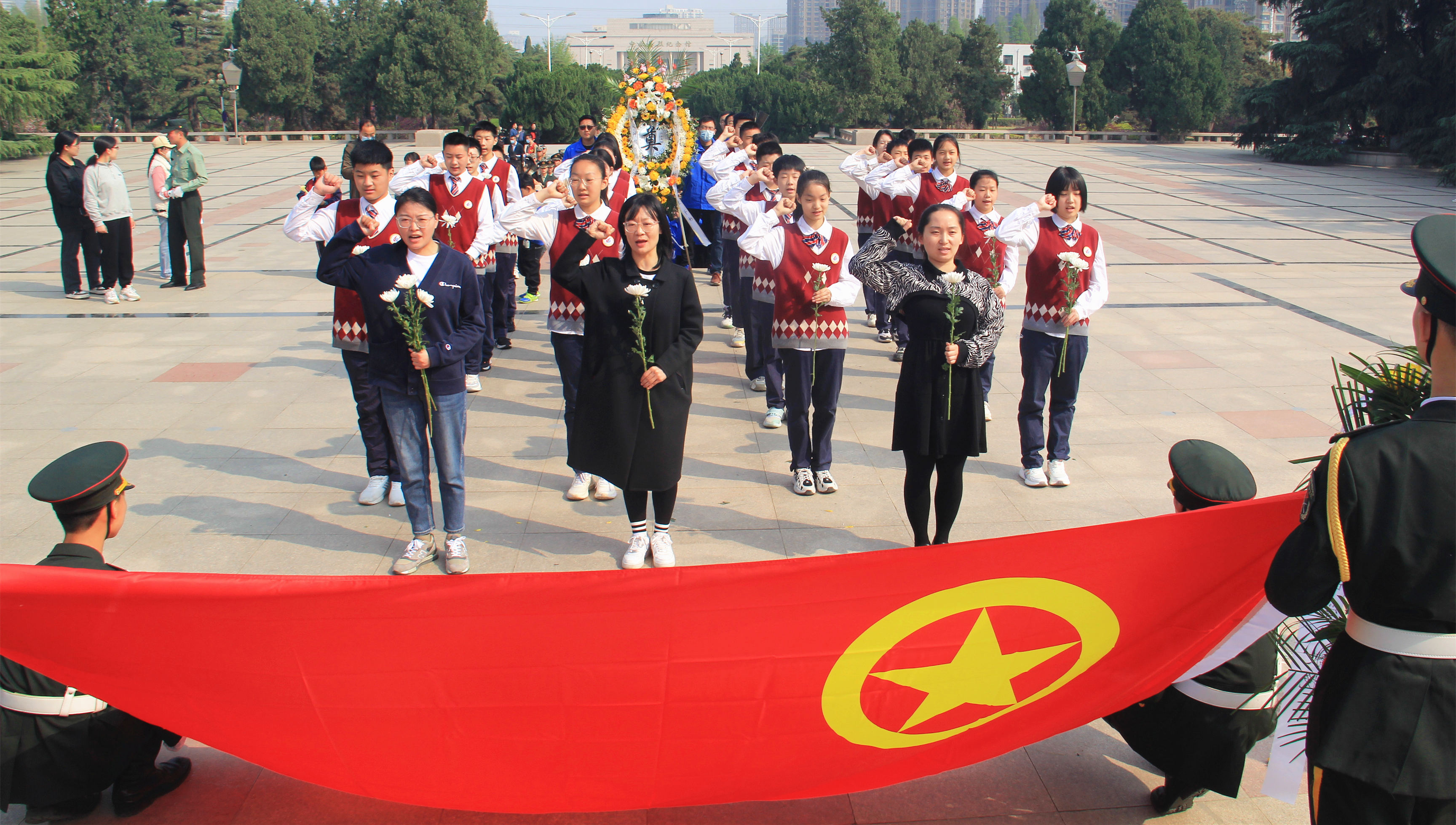 为进一步加强爱国主义、党史国史教育,传承红色基因,4月1日上午,郑州49中组织部分教师和学生代表来到郑州市烈士陵园,开展祭奠革命烈士主题活动。