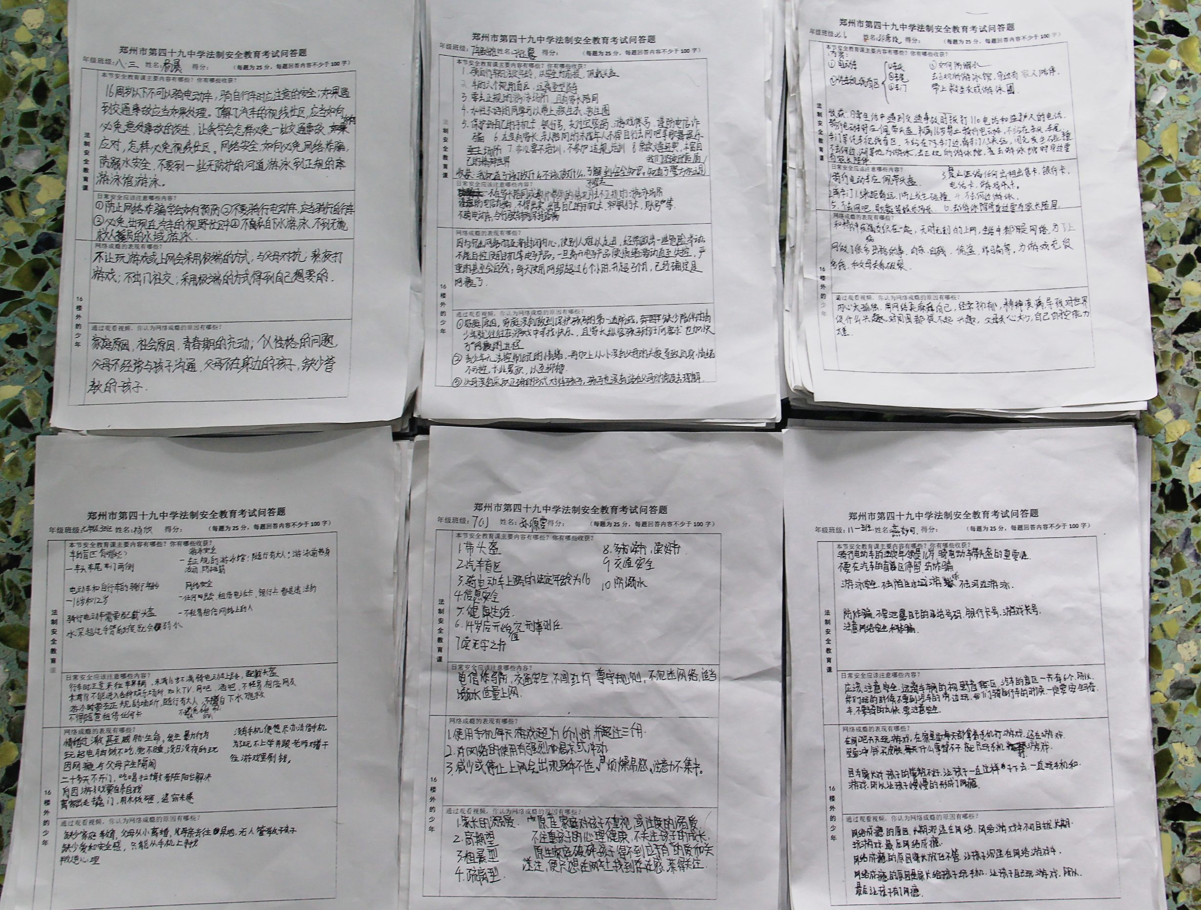 学生认真完成安全知识答卷
