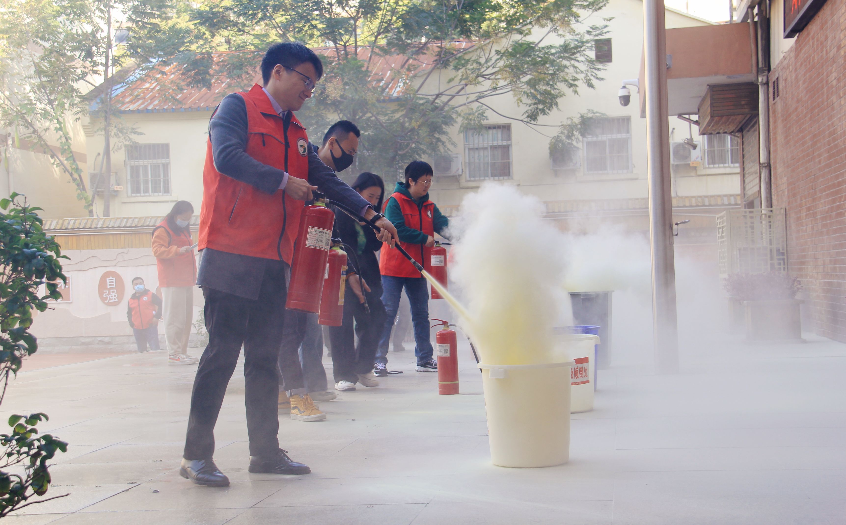 班主任进行灭火器使用