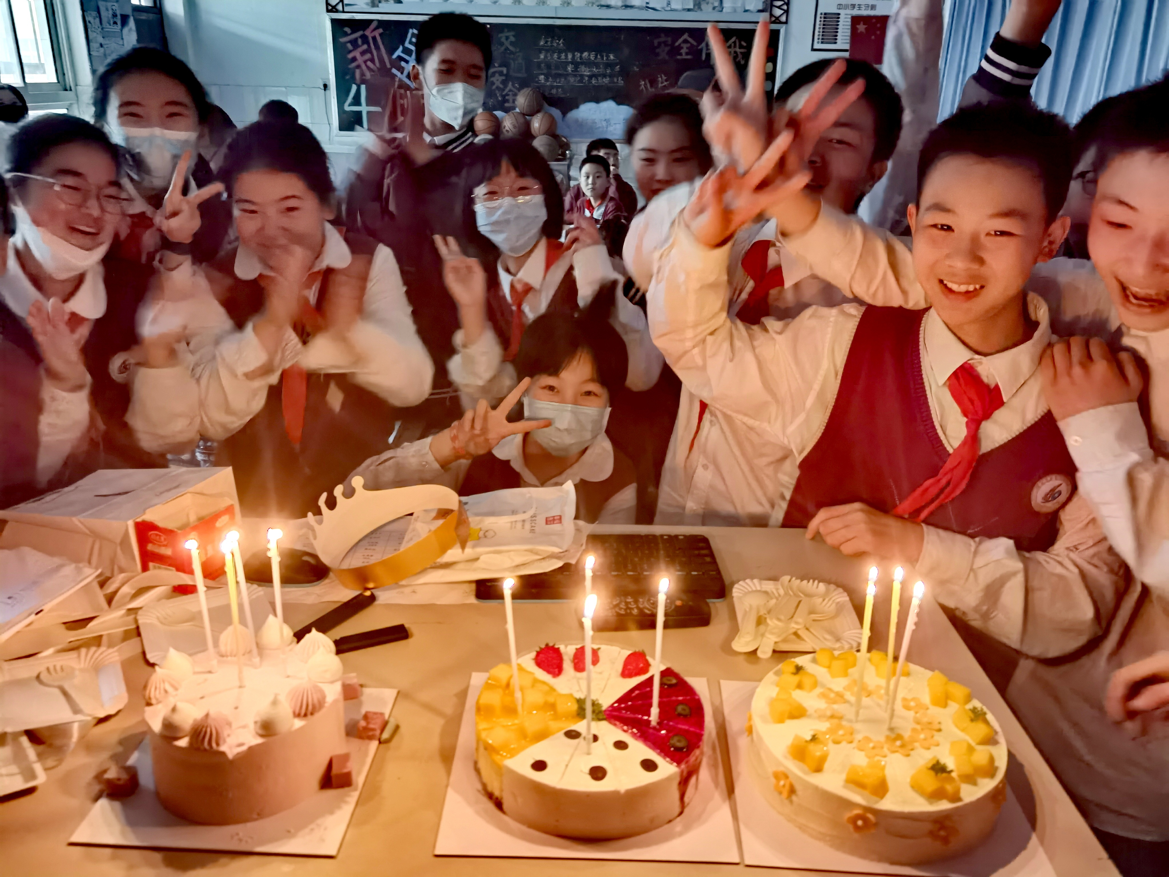爱是一场双向的奔赴,我会利用课间、利用午休、利用周末时间给基础薄弱的同学巩固知识、会在放学后陪学生们一起留在教室完成作业、会在周末进行家访感受他们的生活学习环境、会自费给大家准备进步小礼品、会陪他们一起去做公益、去踢球;而他们也会在教师节用满满的祝福在黑板上汇成一幅巨作、会在班主任节亲手给我制作蛋糕、会送来写满祝福语的卡片以及家长们满满的信任。爱出者爱返,学生坚定的眼神是我工作的动力源泉。