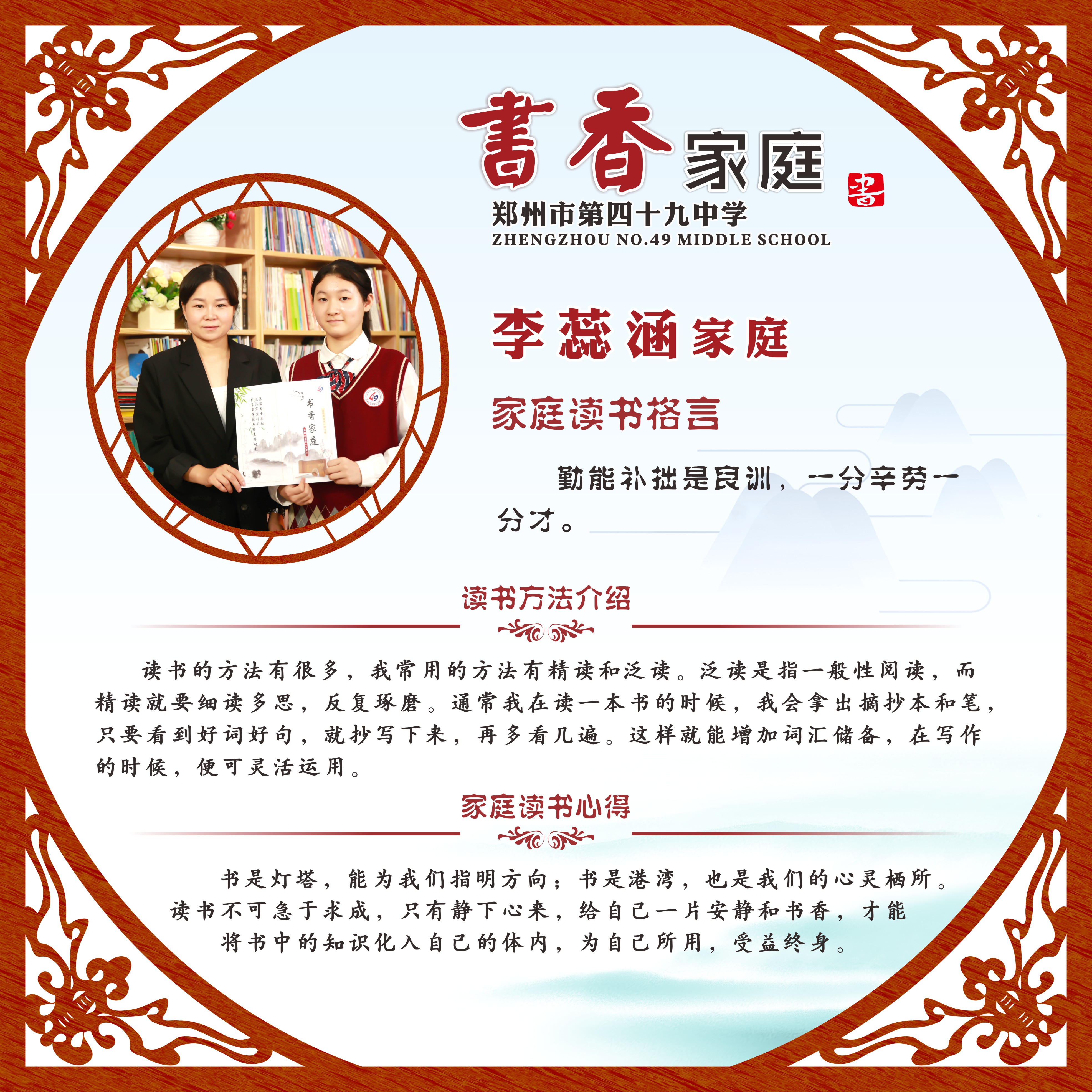 【书香家庭】郑州49中2021年书香家庭 让阅读成为一种习惯