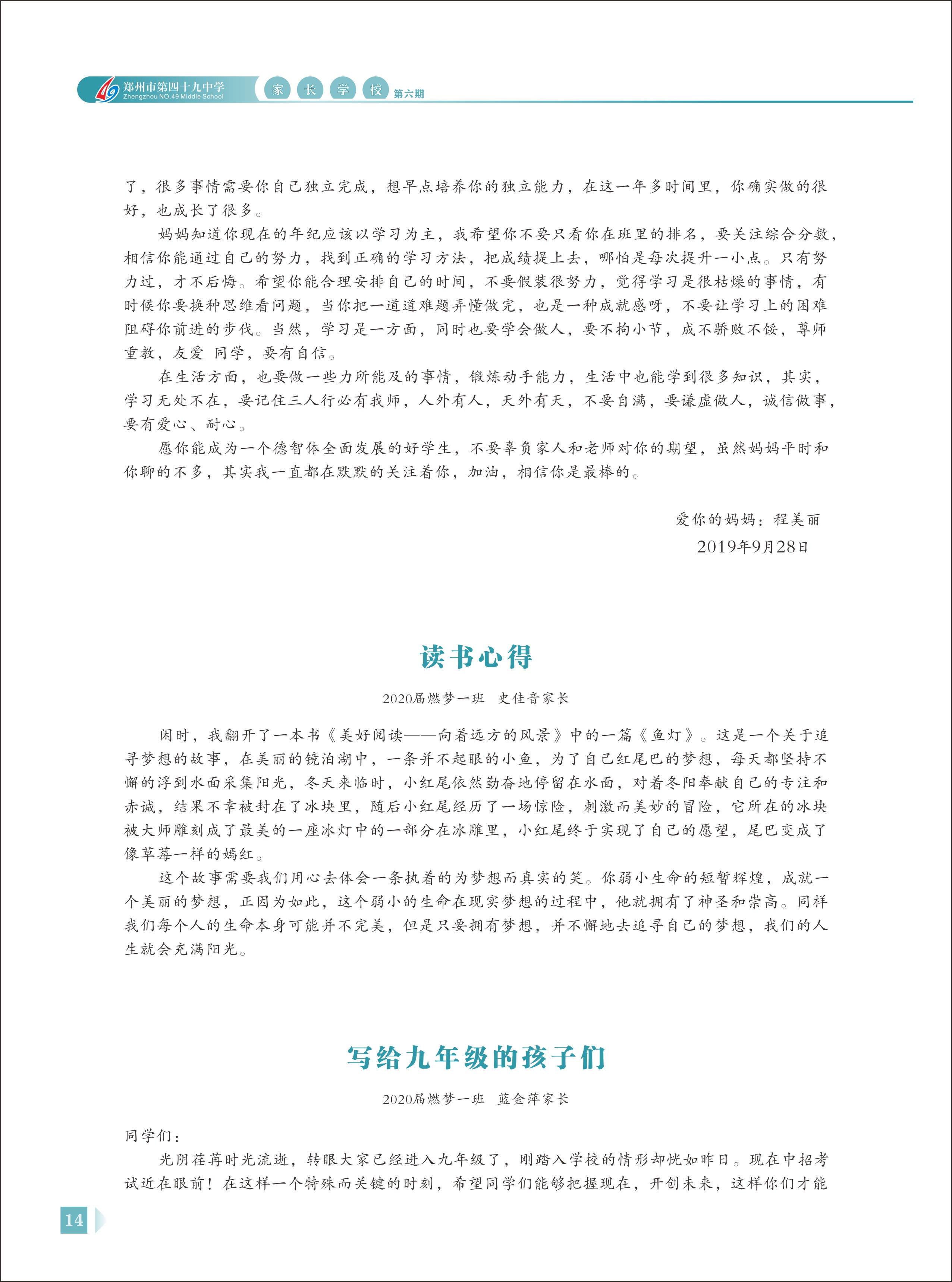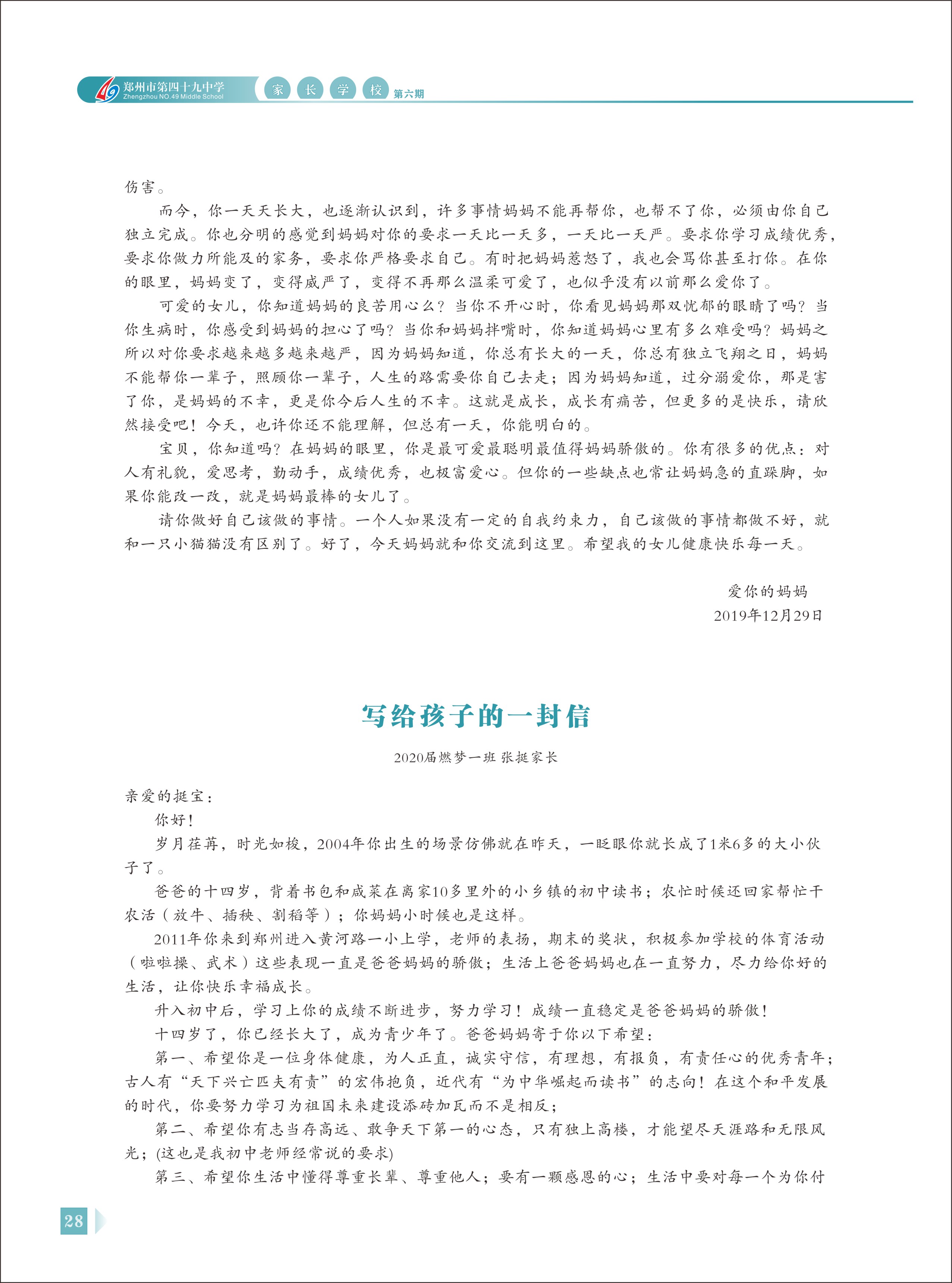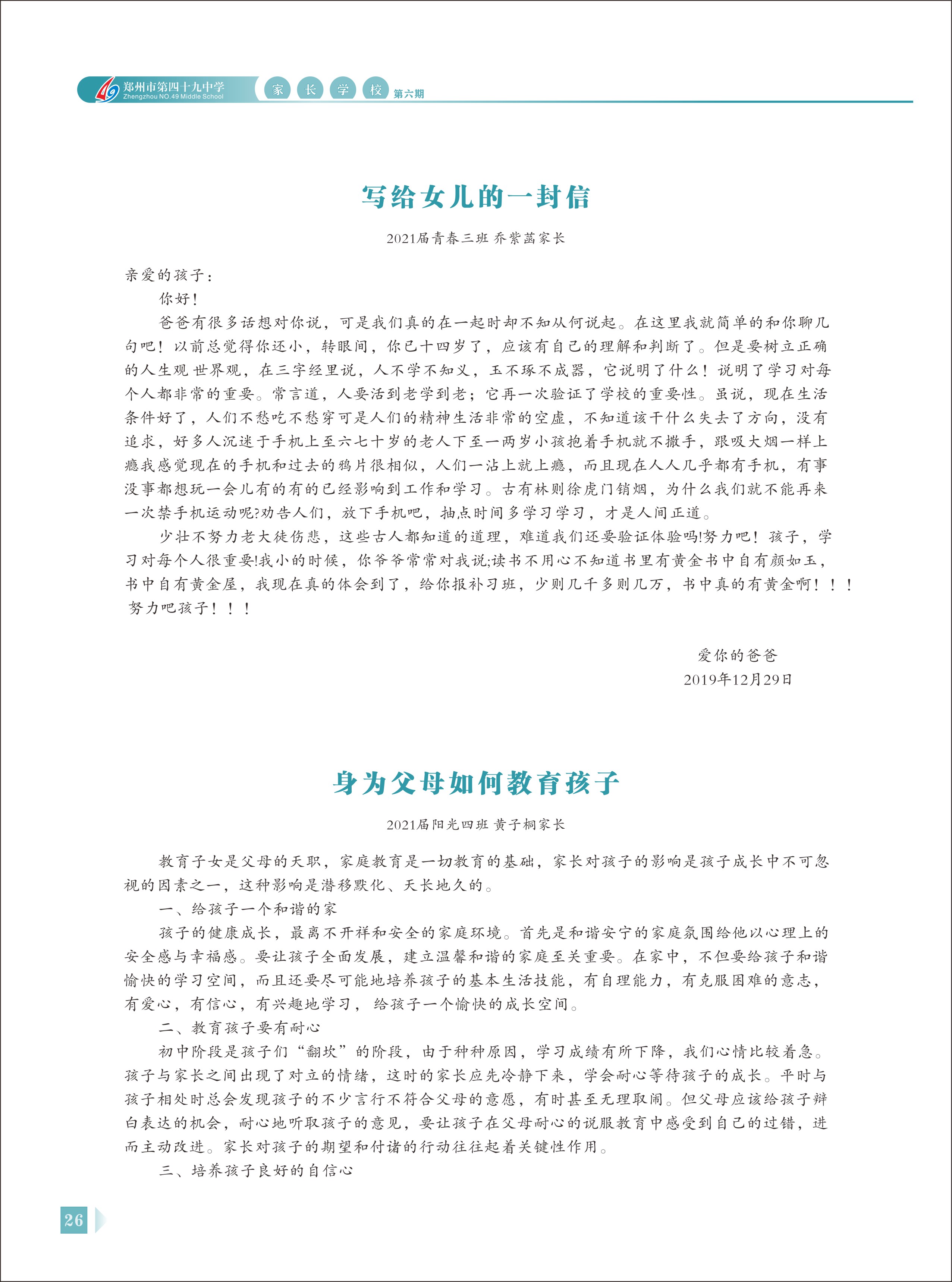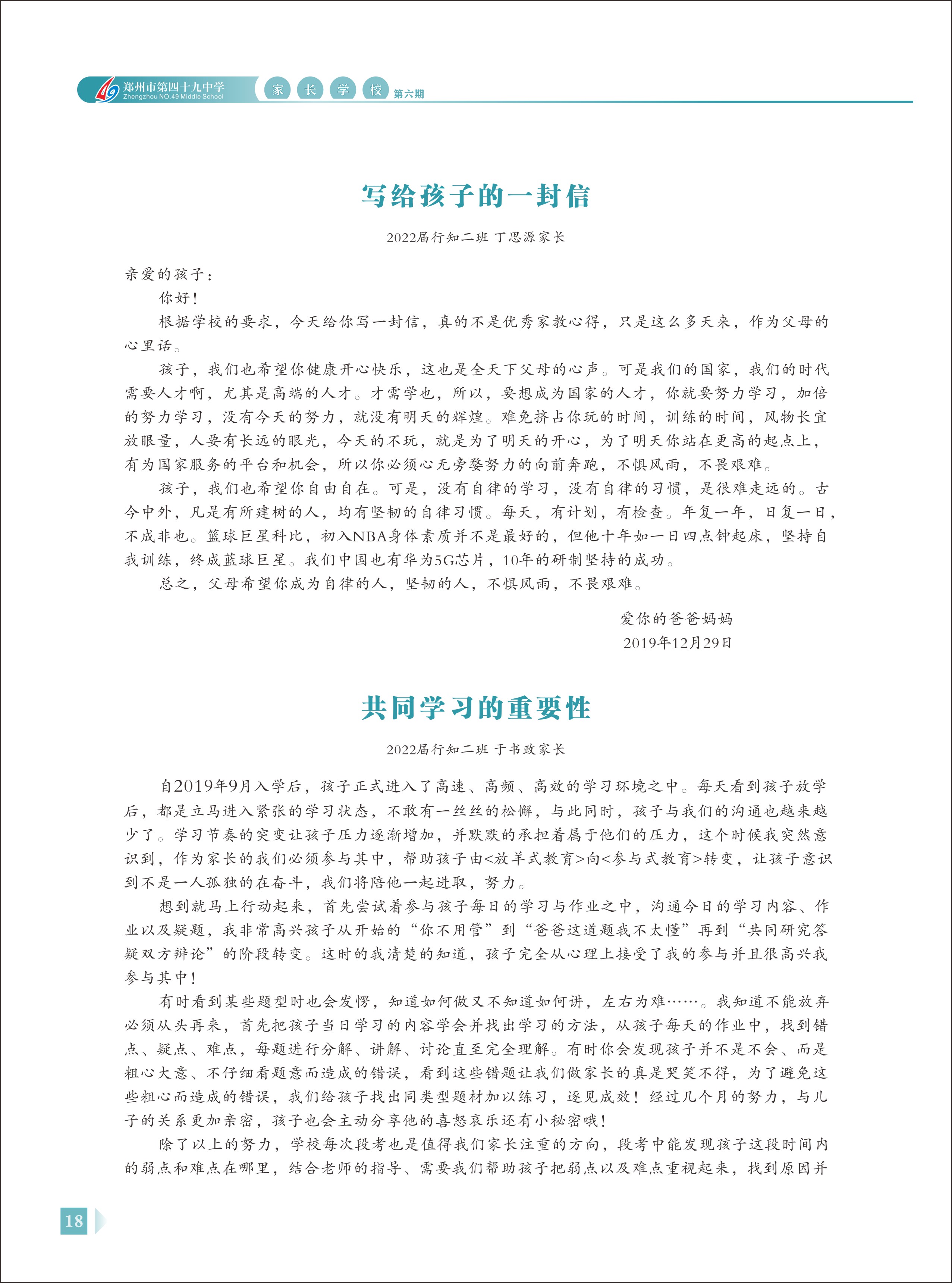 郑州49中《家长学校》第6期