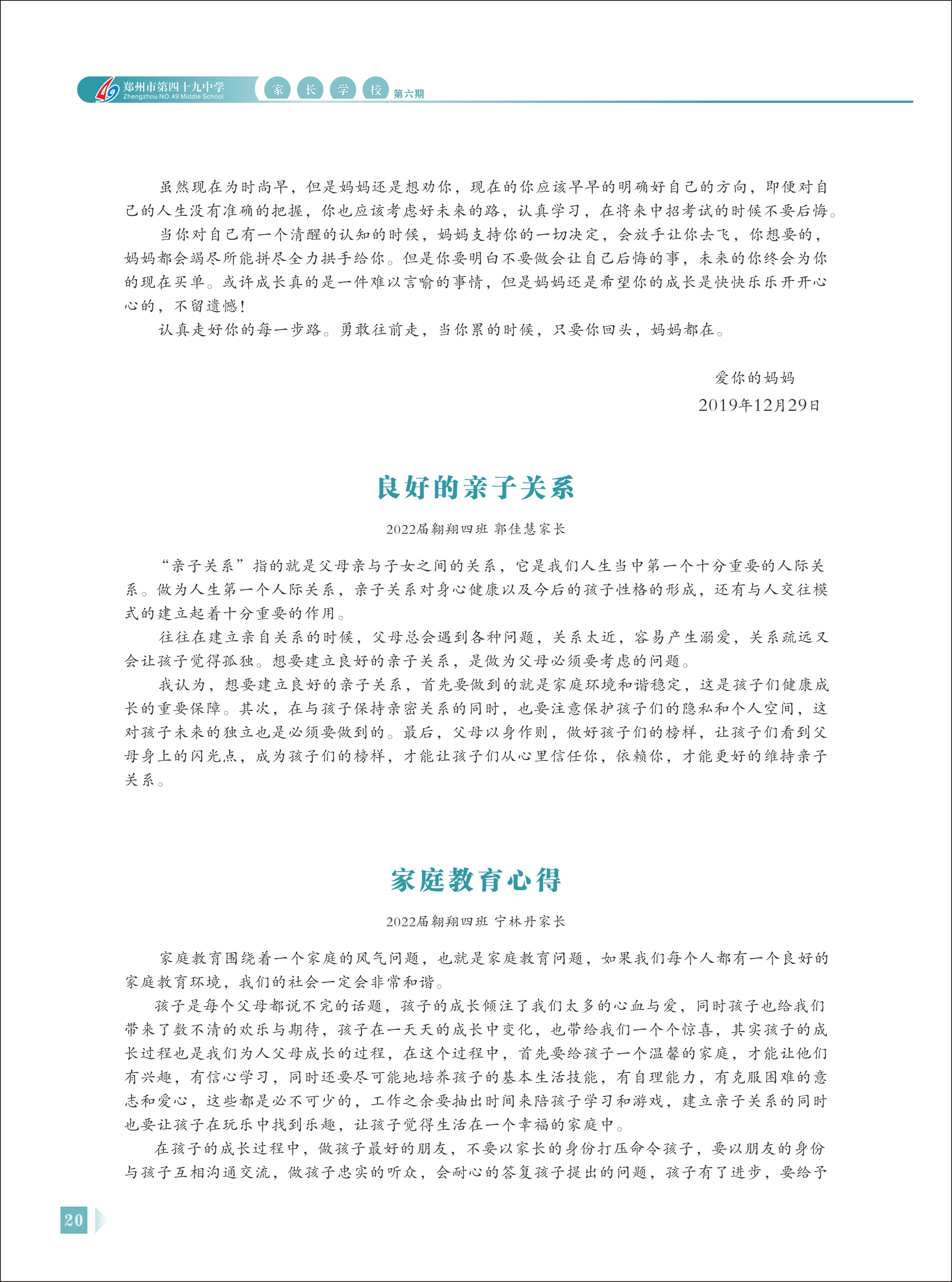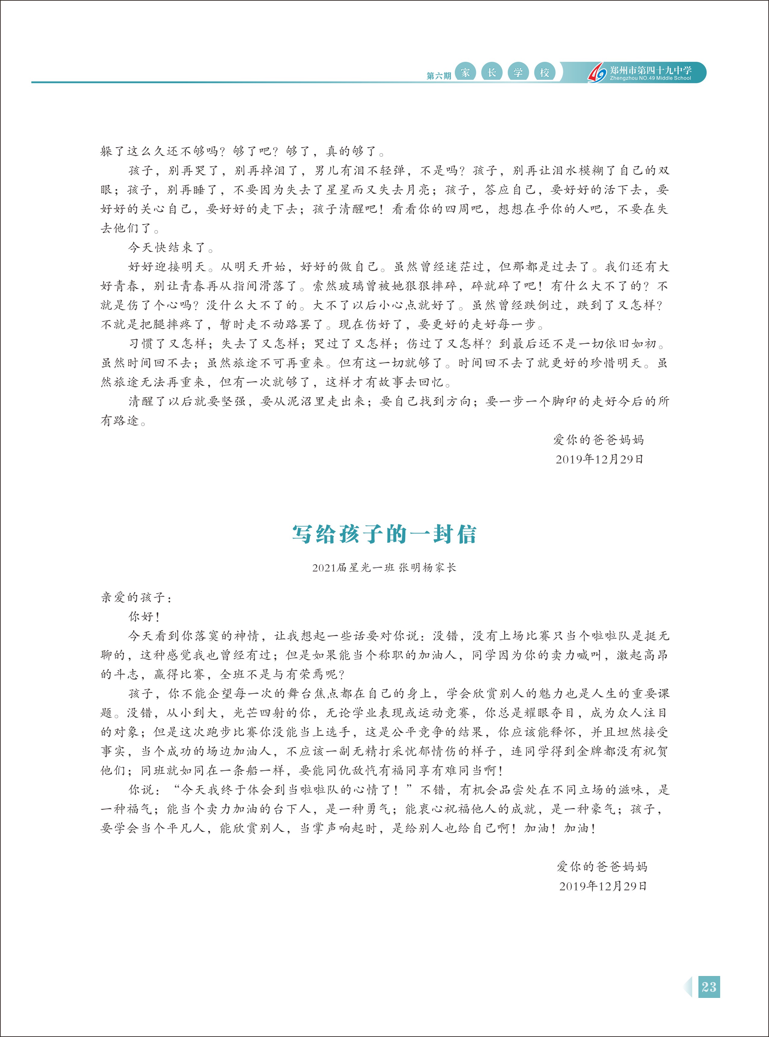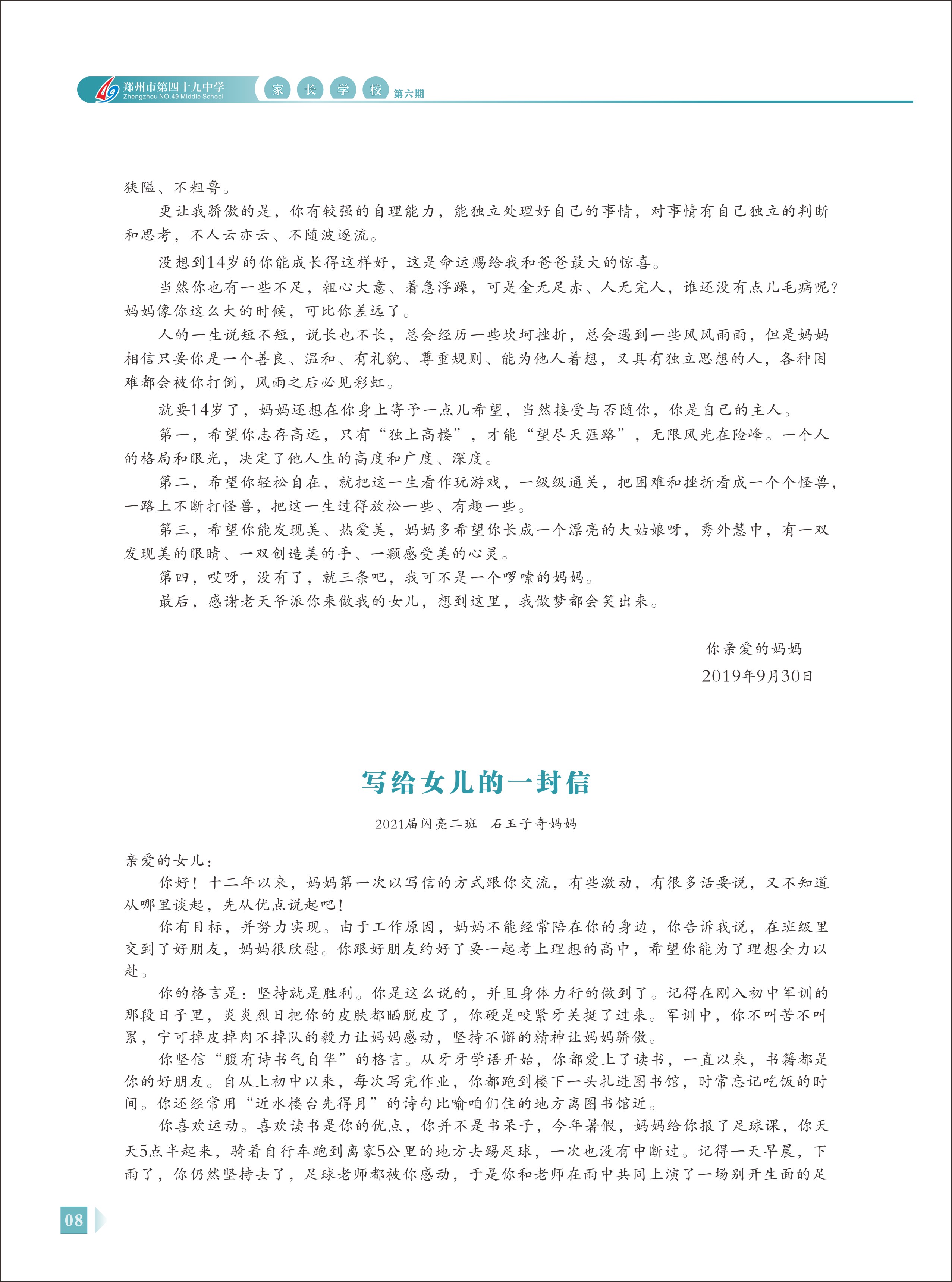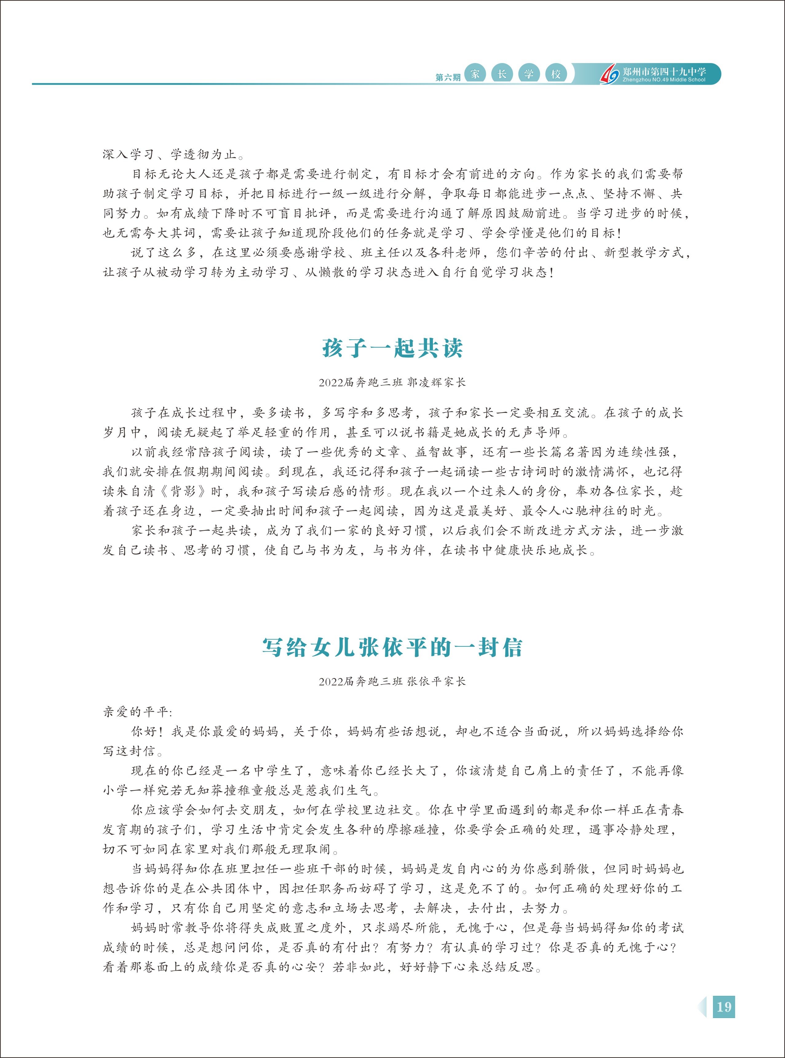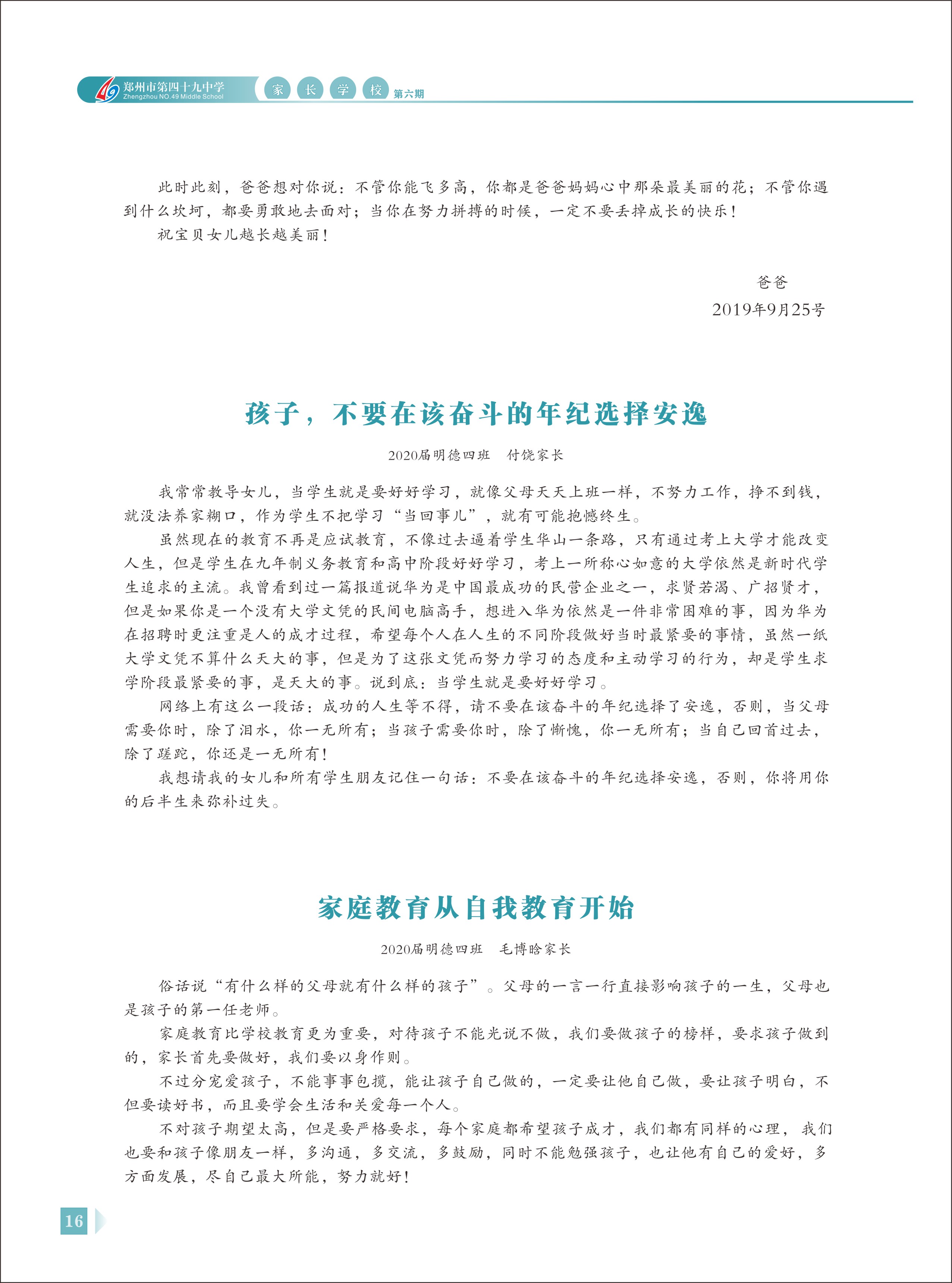 郑州49中《家长学校》第6期