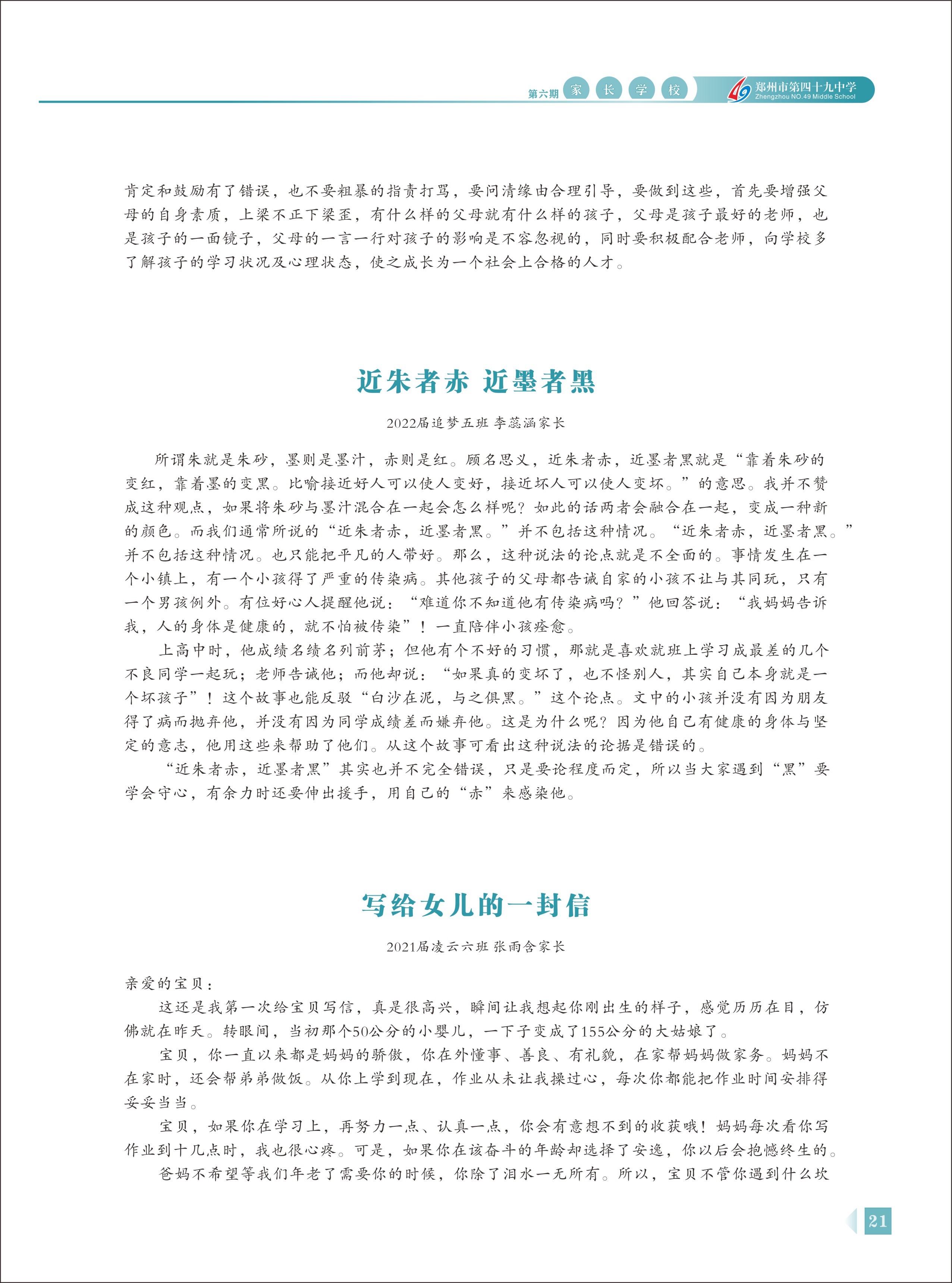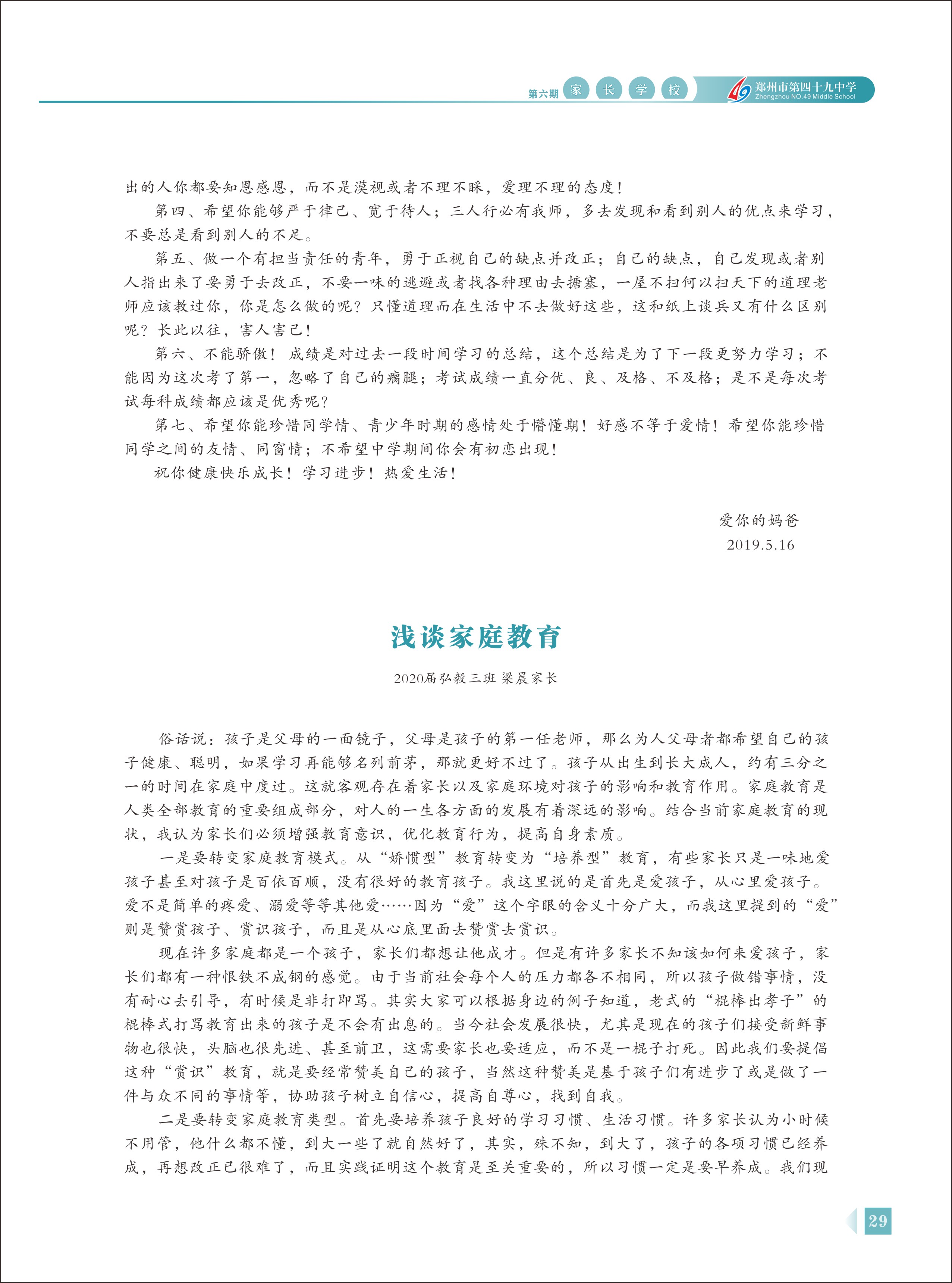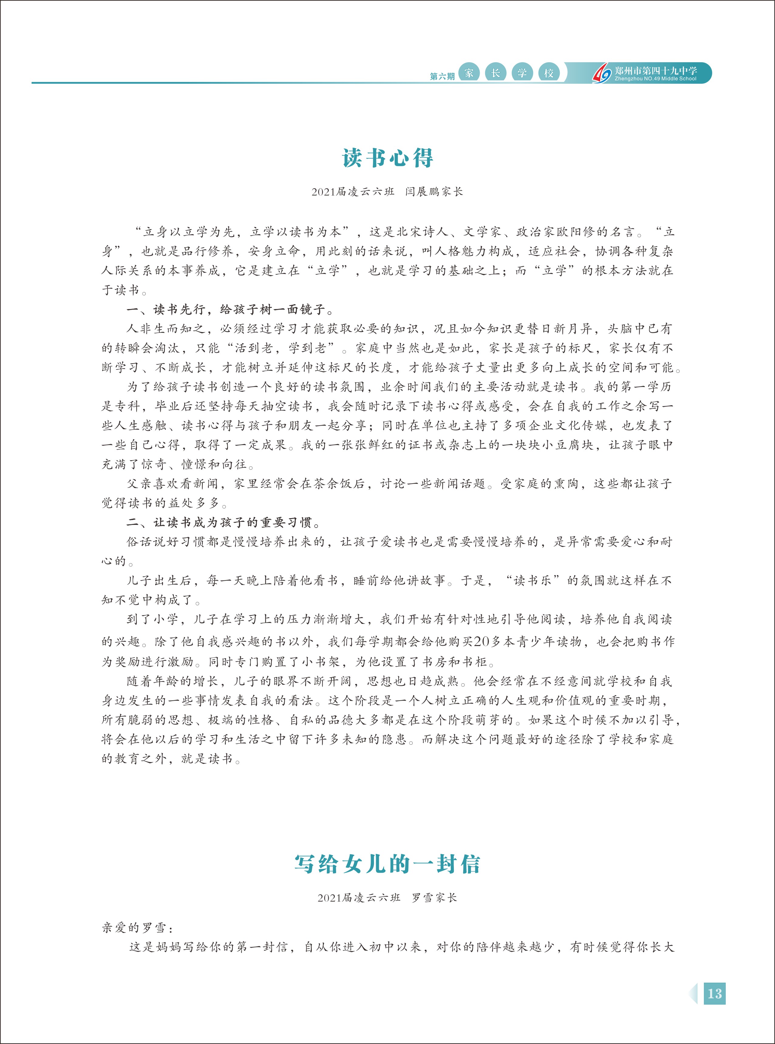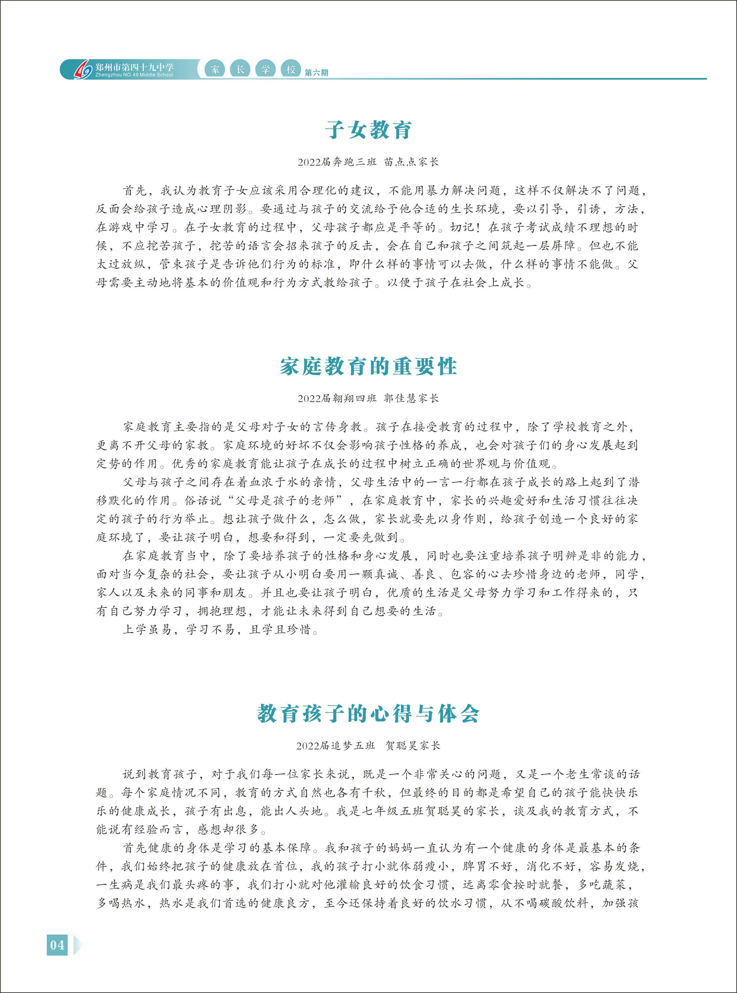 郑州49中《家长学校》第6期