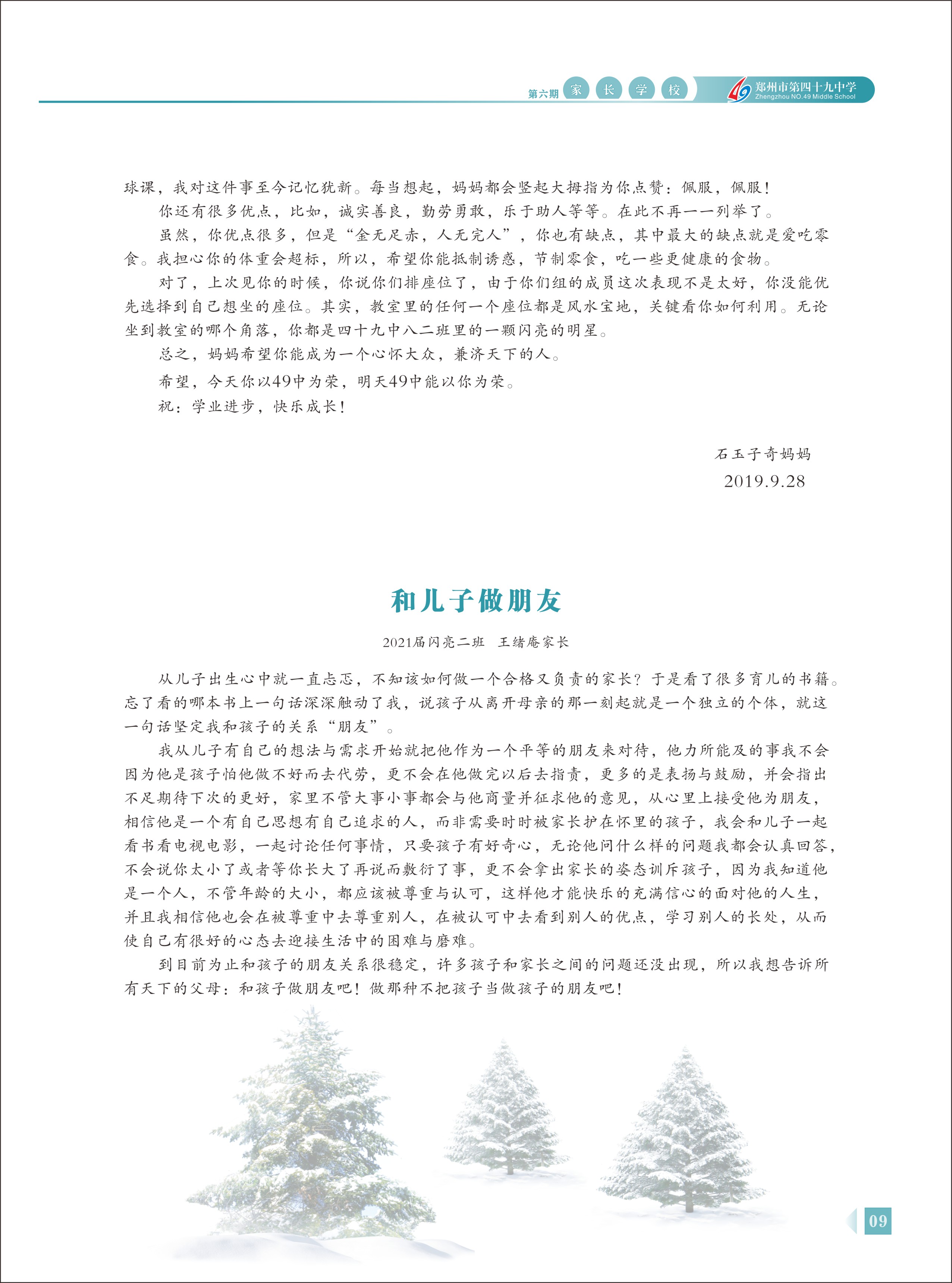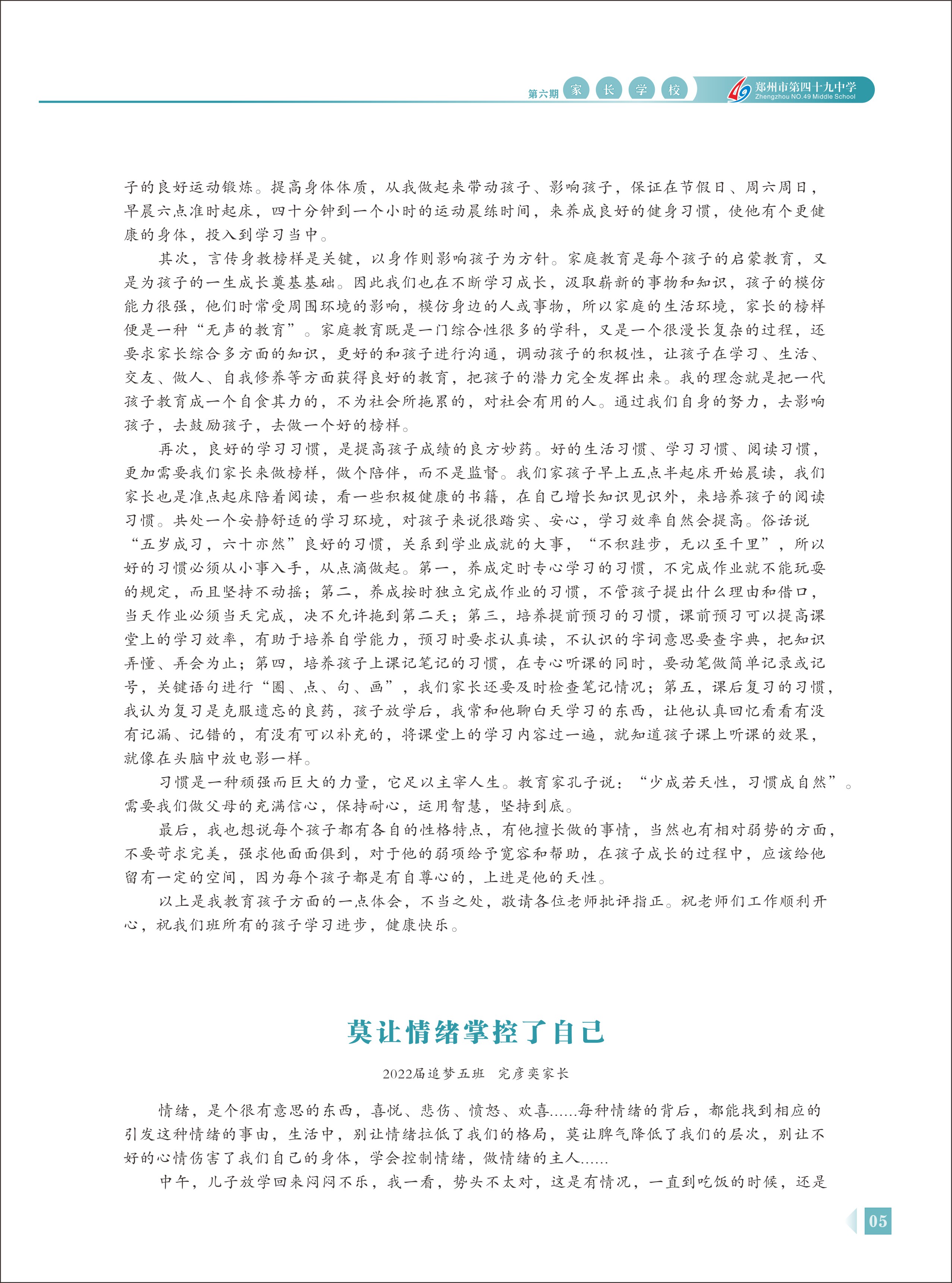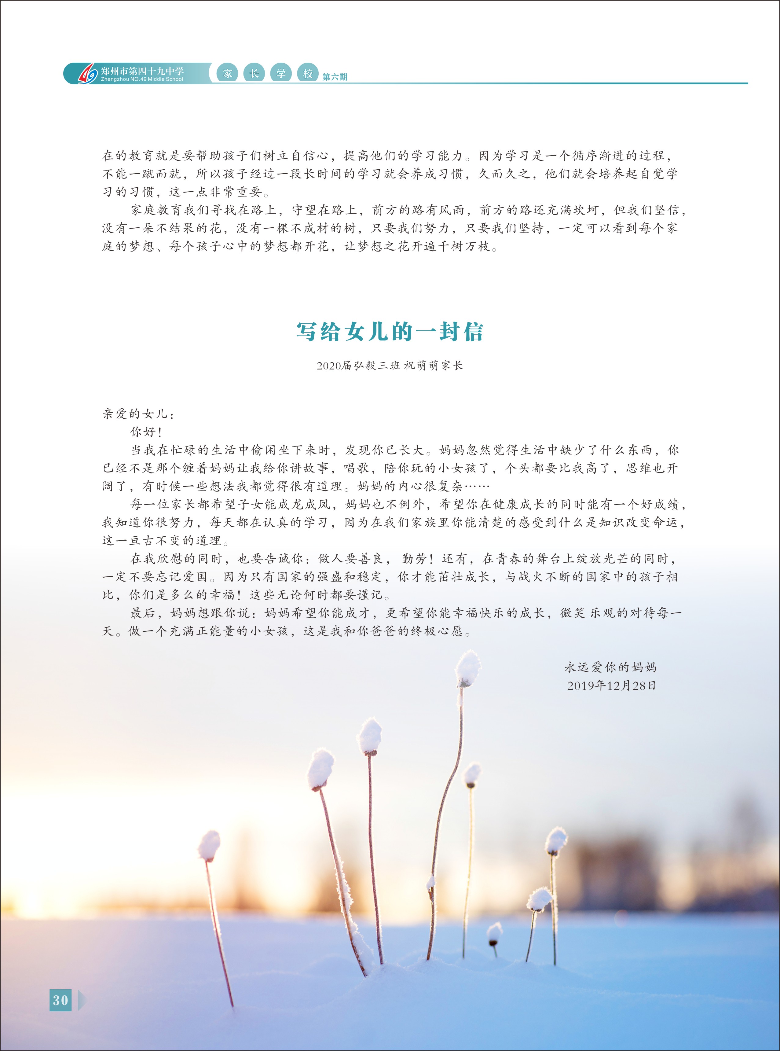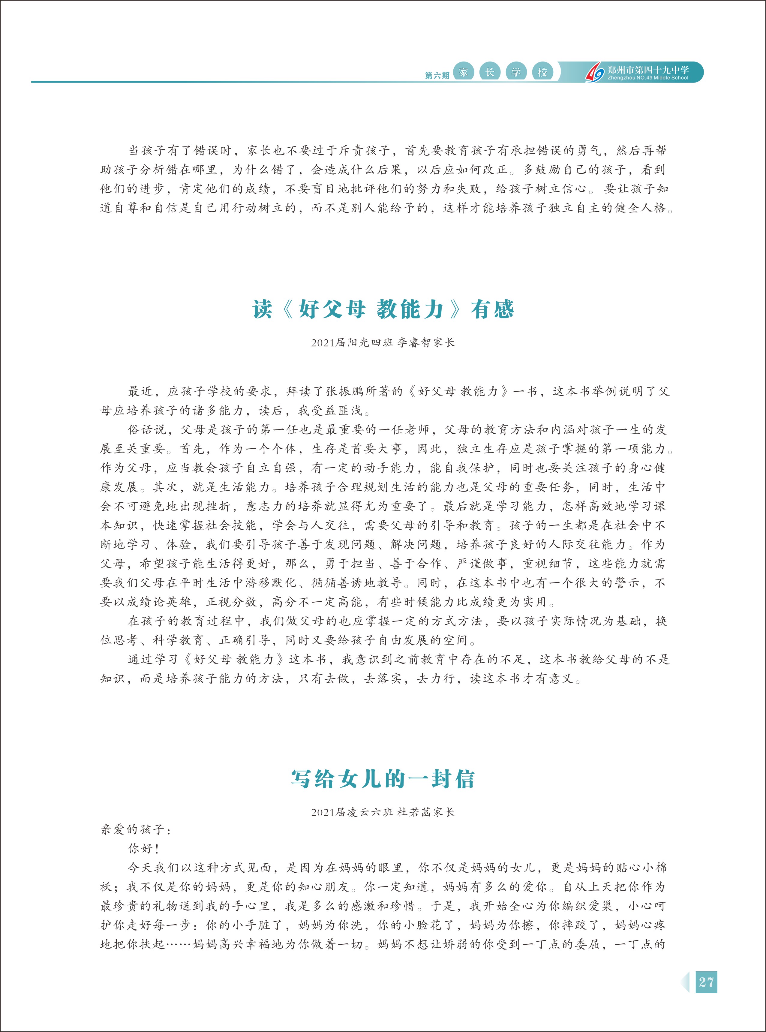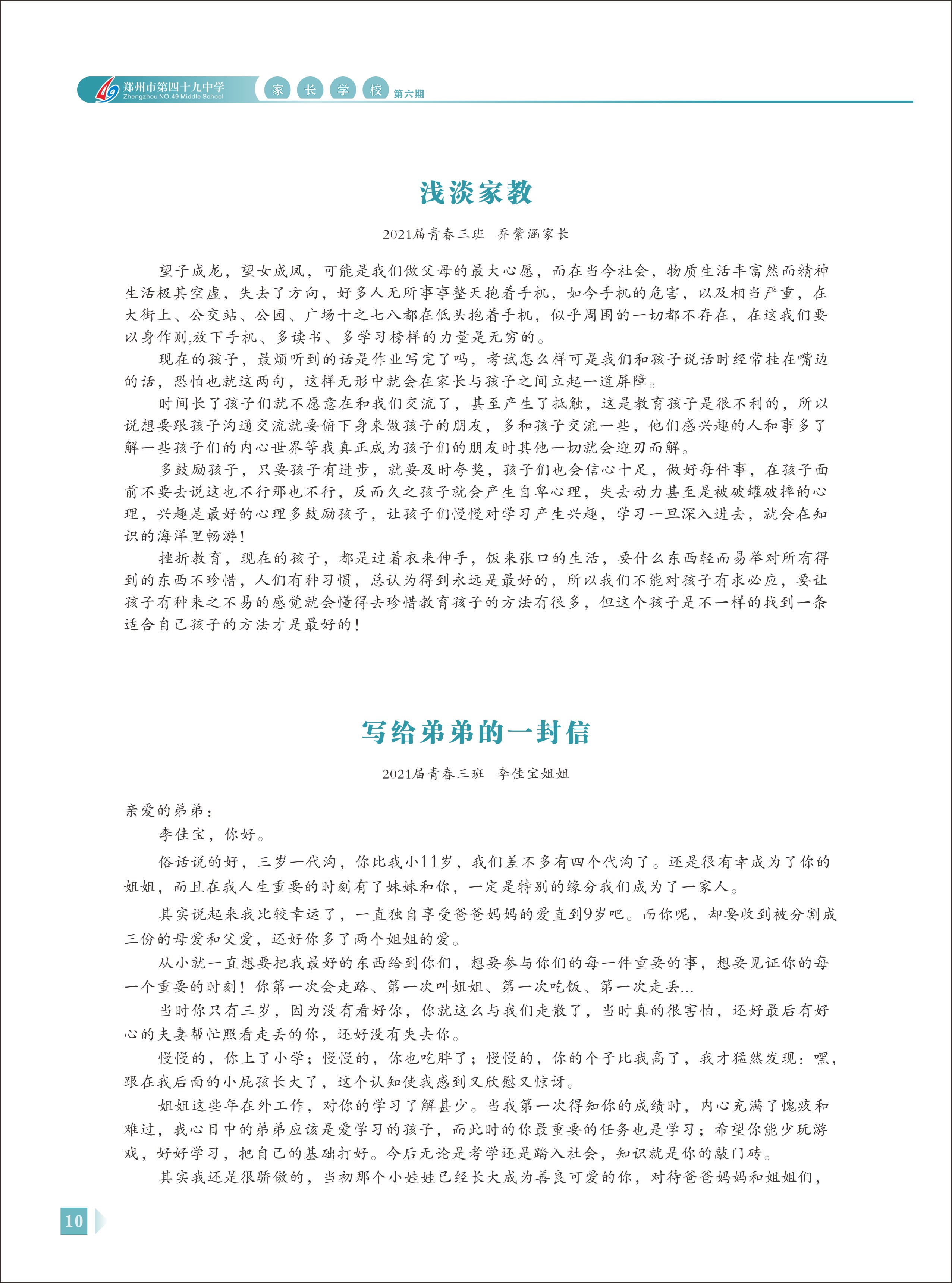 郑州49中《家长学校》第6期