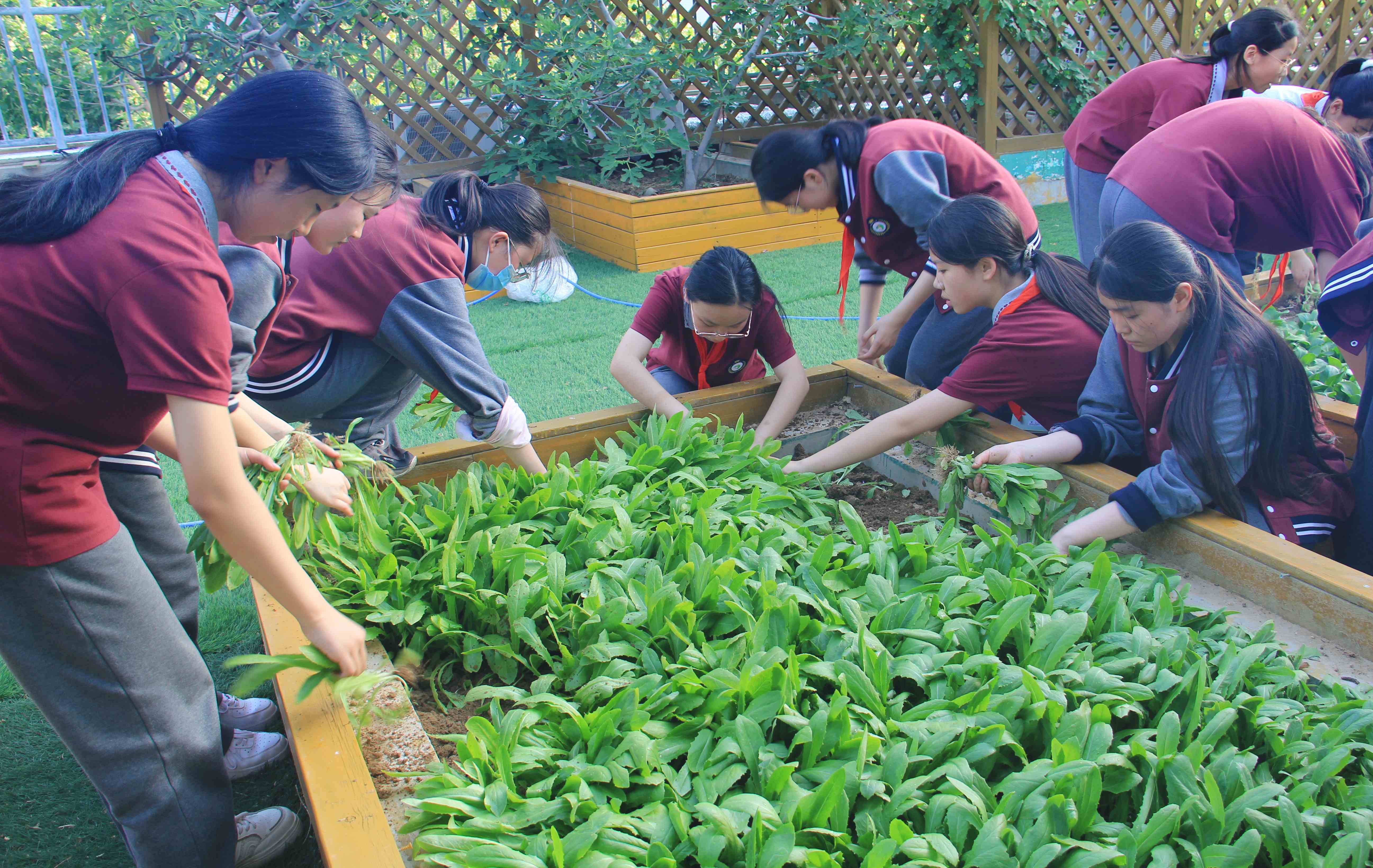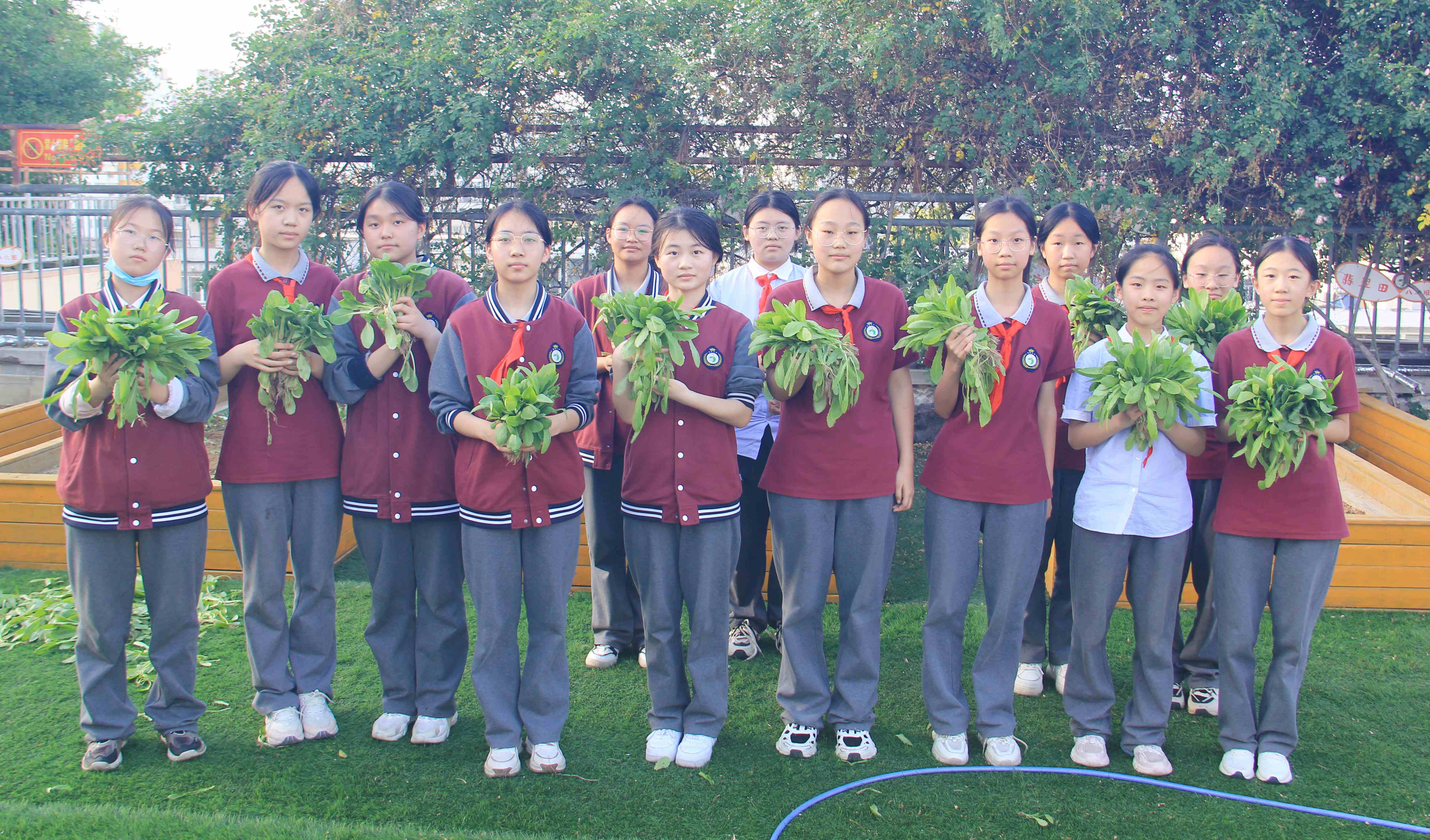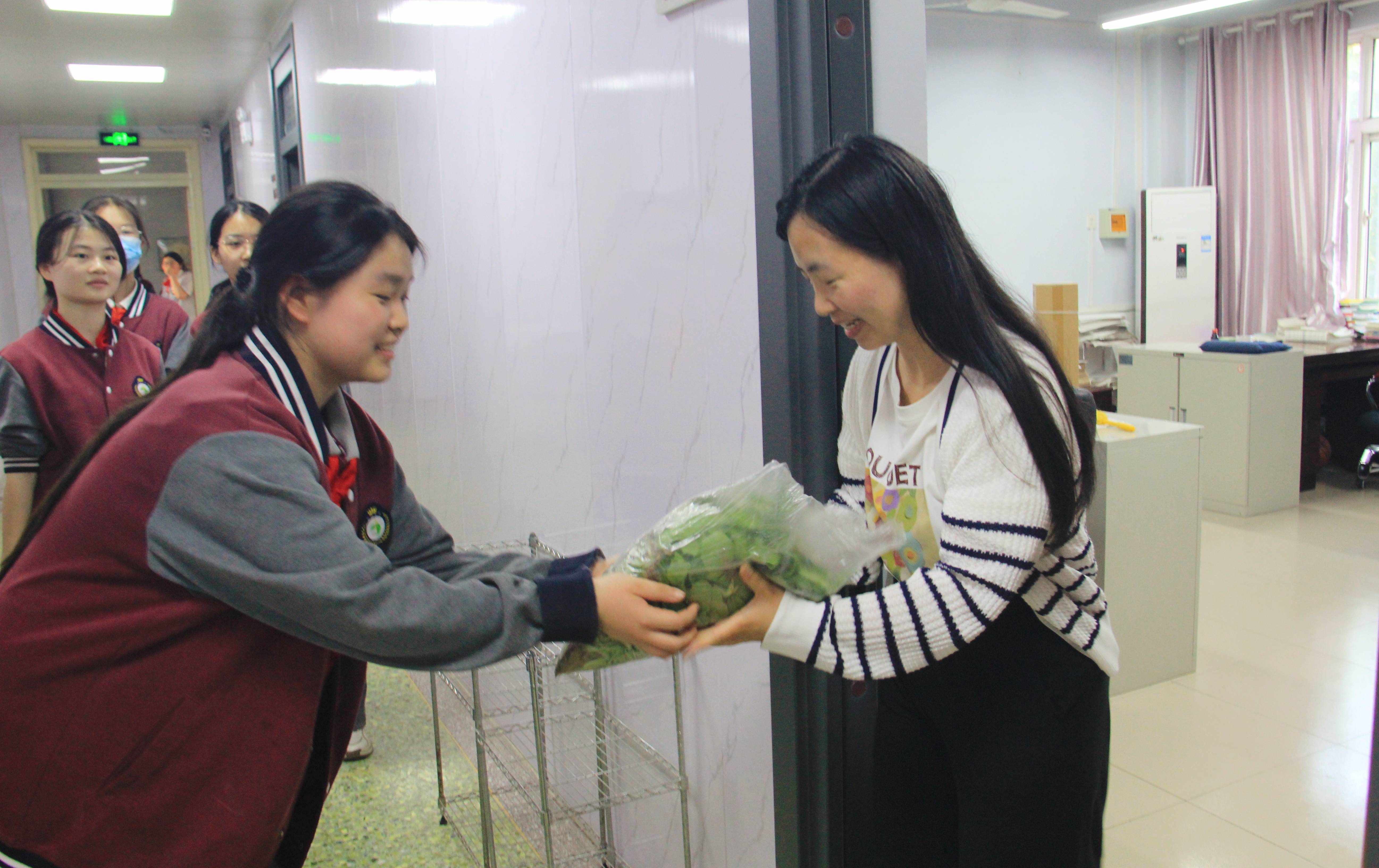 茼蒿、油麦菜、上海青……青绿色的劳动果实见证了同学们曾经洒下的汗水,他们要把这份沉沉甸甸的果实采摘下来送给无私陪伴着他们的老师……