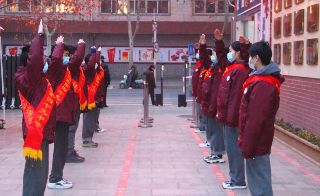 郑州49中举行室内升旗仪式