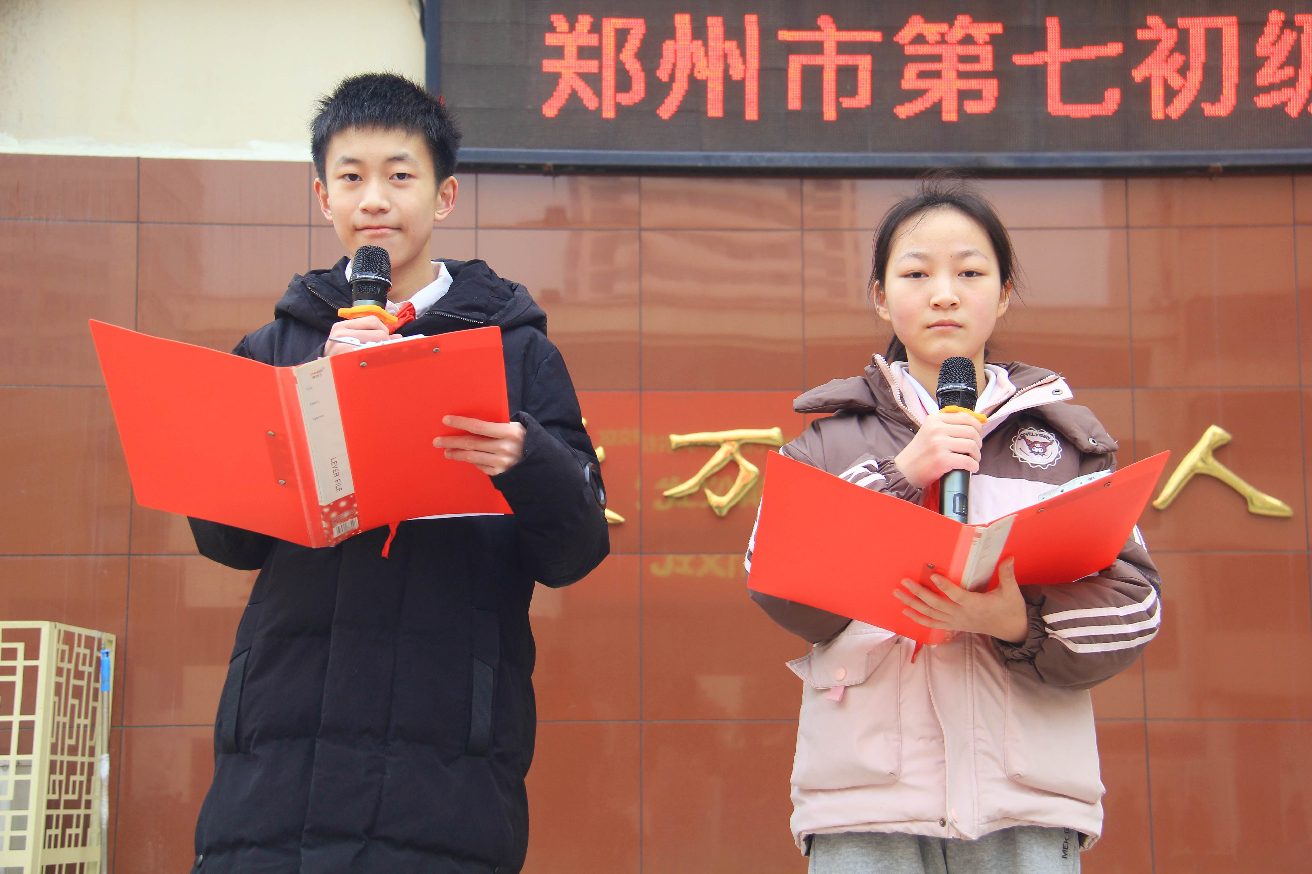 王彤、赵裕航同学进行国旗下的演讲