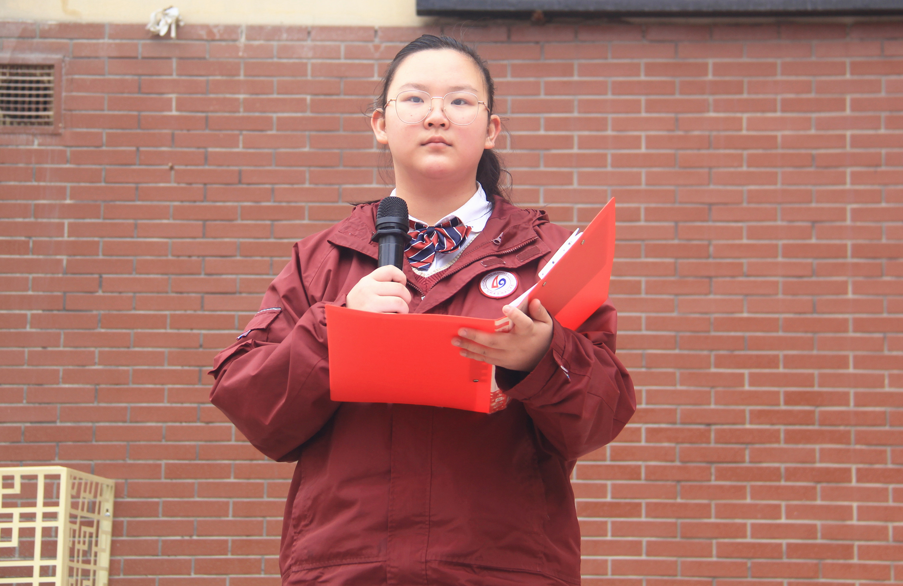 柴艺、林佳愉做国旗下演讲