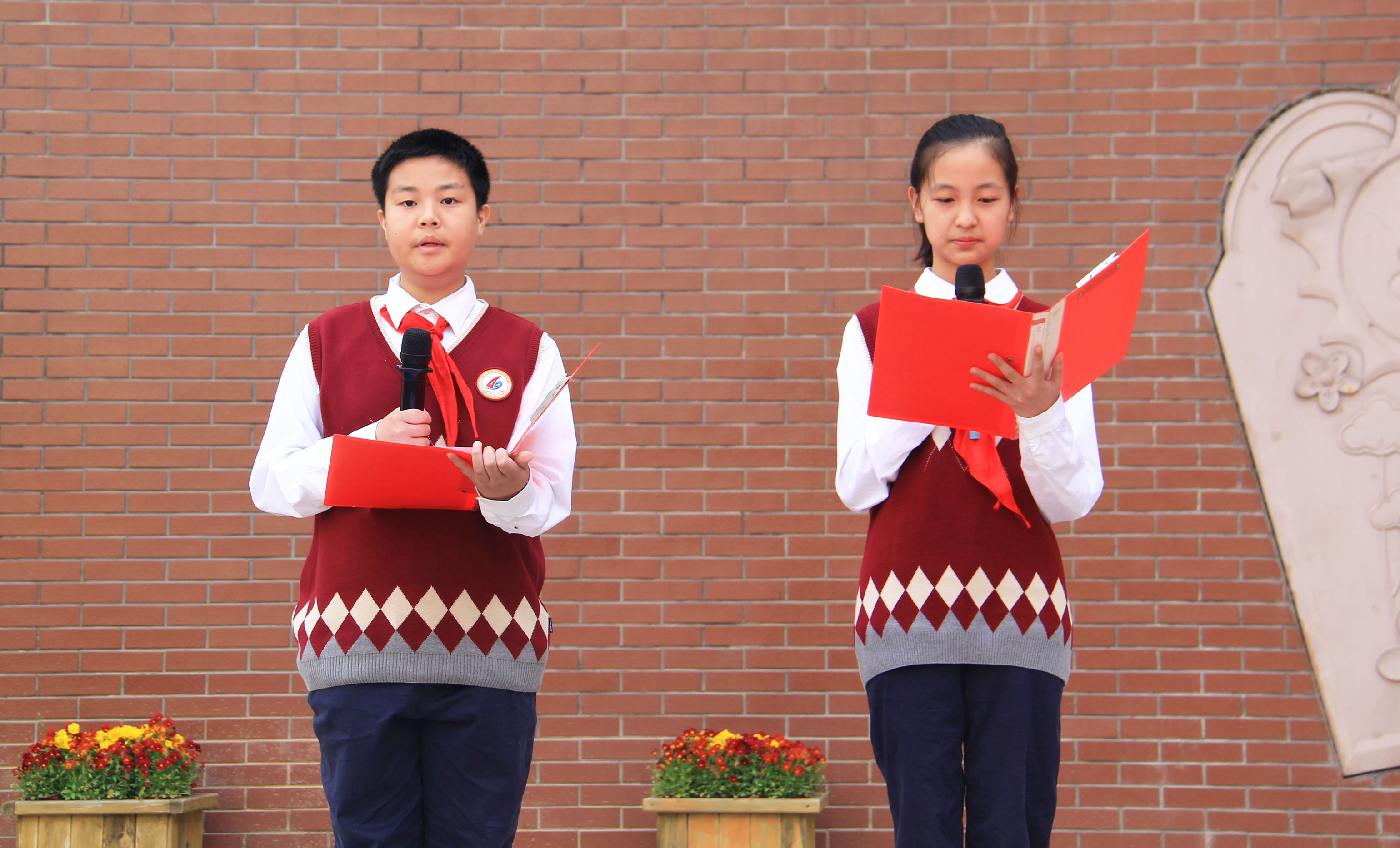 彭正烜、宋奕静同学做国旗下演讲