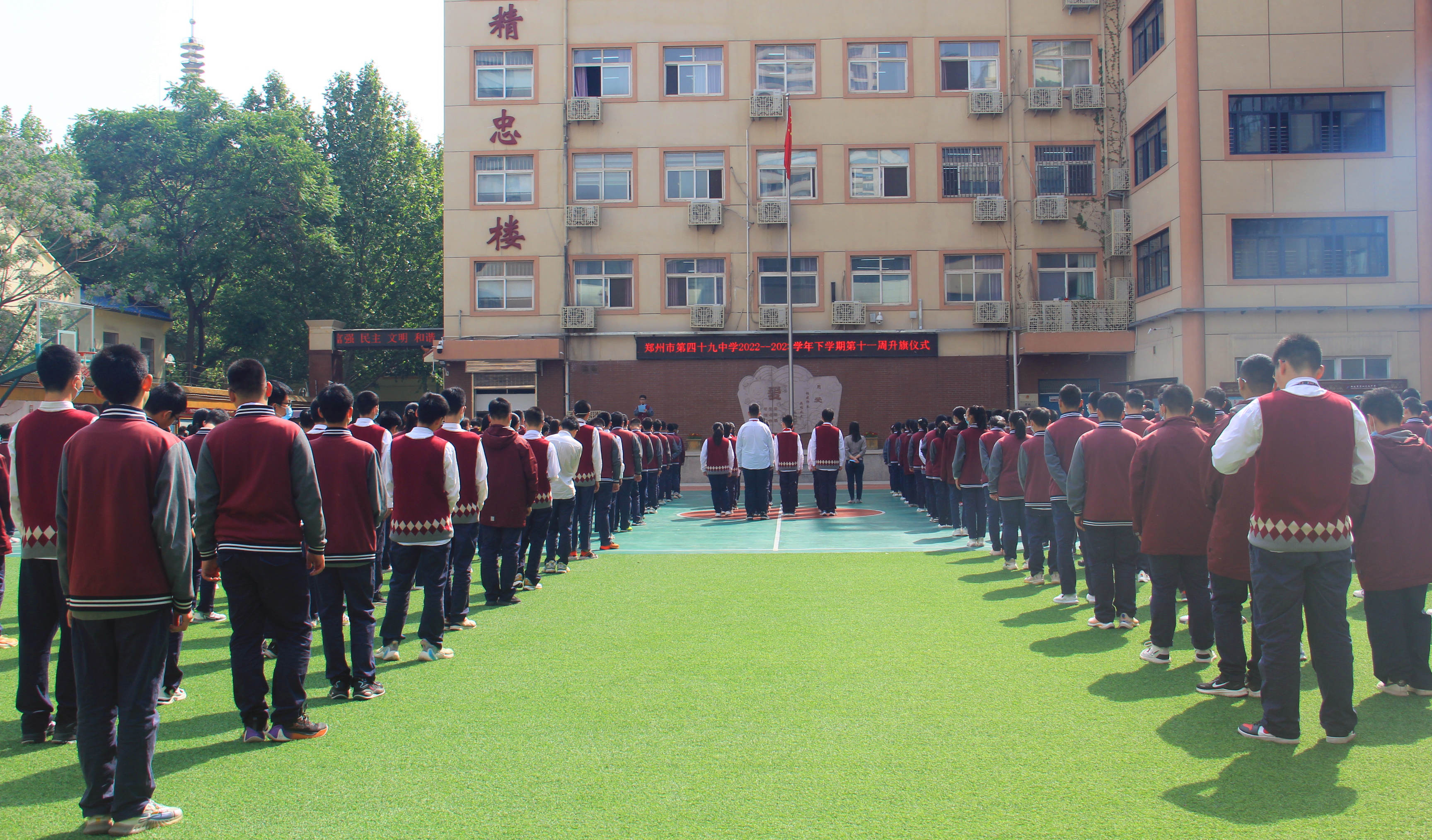郑州49中举行室外升旗仪式