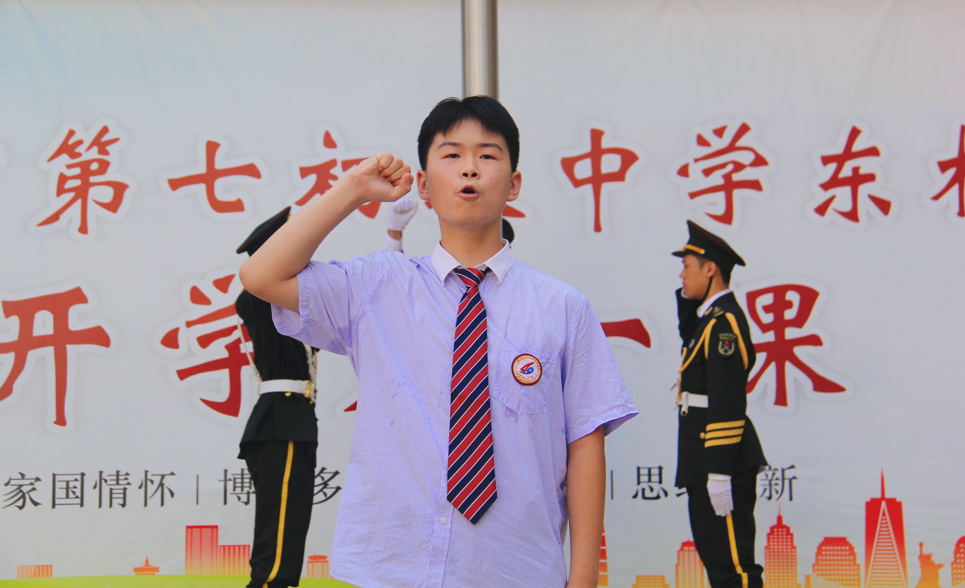 郑州七初东校区举行室外升旗仪式