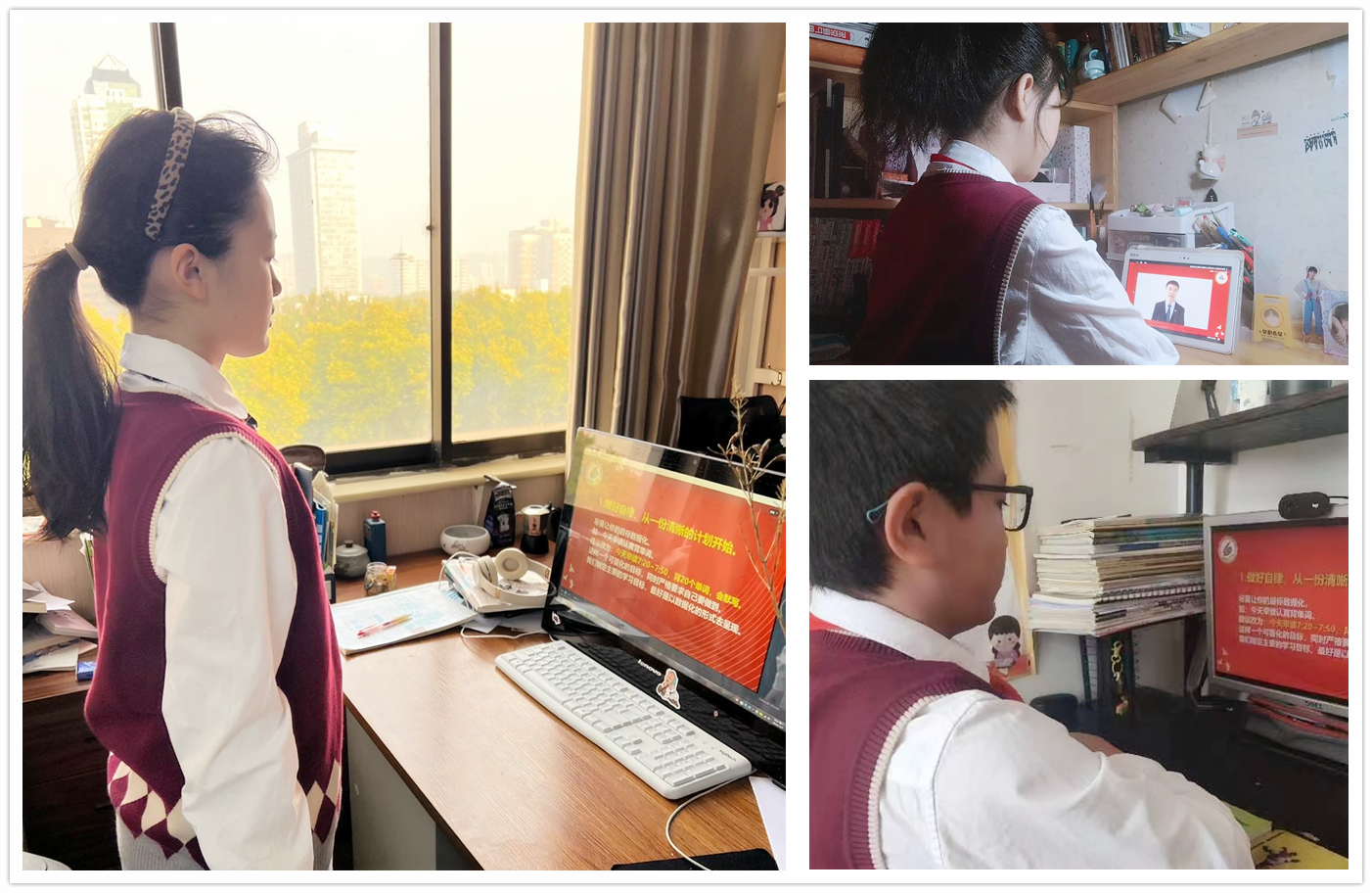 同学们,如果在居家生活学习中,遇到困难,可以随时联系我们的班主任老师、任课老师。学校政教处王老师、葛老师、杨大夫还有我,也时刻与大家相伴。钉钉上都有大家的手机号码,如果有特殊情况,可以直接拨打电话。相信这次疫情,在我们全社会的共同努力下,很快会过去,老师们克服种种困难备课上课,同学们自律的居家生活学习,将成为我们成长中的难忘经历。