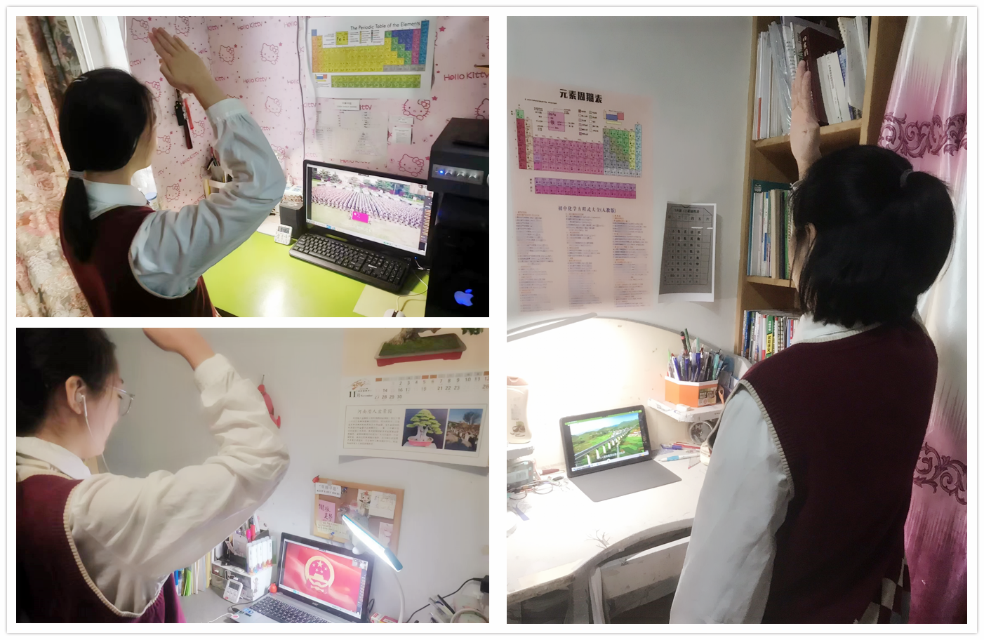 我常想,每一个穿着防护服奔波在疫情最一线的工作人员,他们的家中一定有正在上网课,却没有人管的孩子。每每想到这些,我都会更加努力地备课,更加积极主动地与同学们连麦,更加平和和耐心地与家长沟通,并尽最大可能减少自身的流动,不给防疫工作添乱。