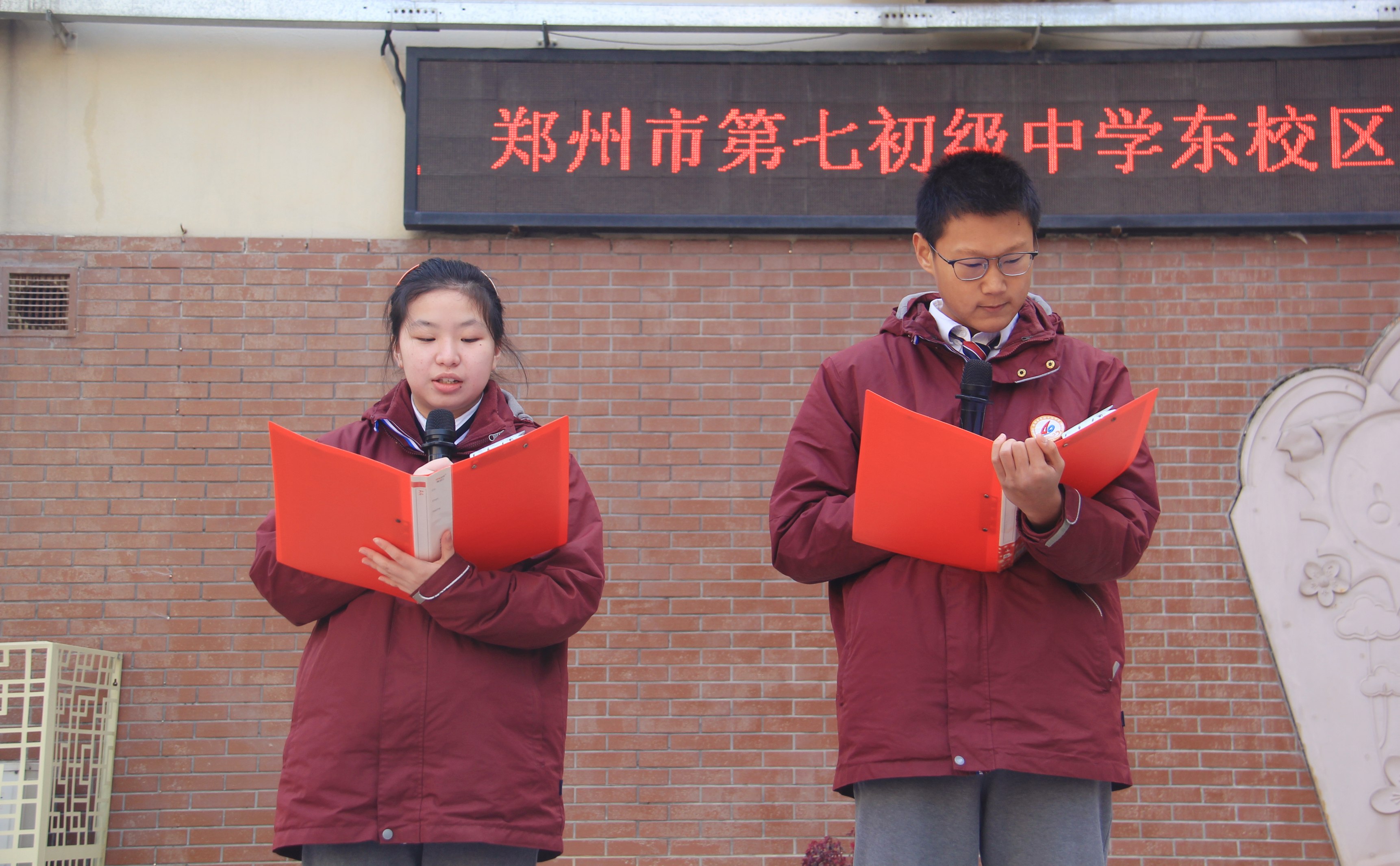 胡娇娇、李梓赫同学做国旗下演讲