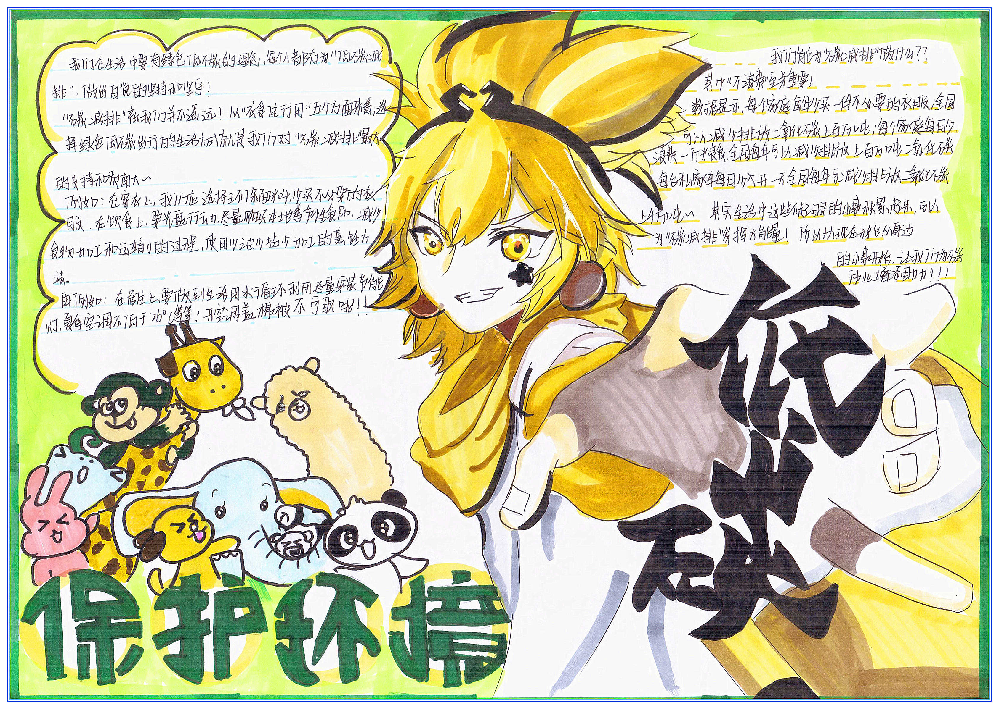 低碳生活是一种方式,更是一种态度,希望我们每一个人都能从点滴做起,从身边做起,珍惜资源,保护地球,真正实现“人与自然和谐共生”的美好愿景。