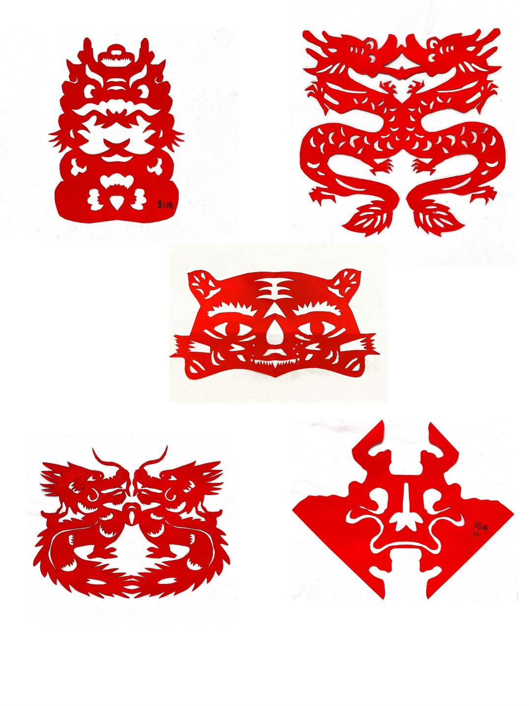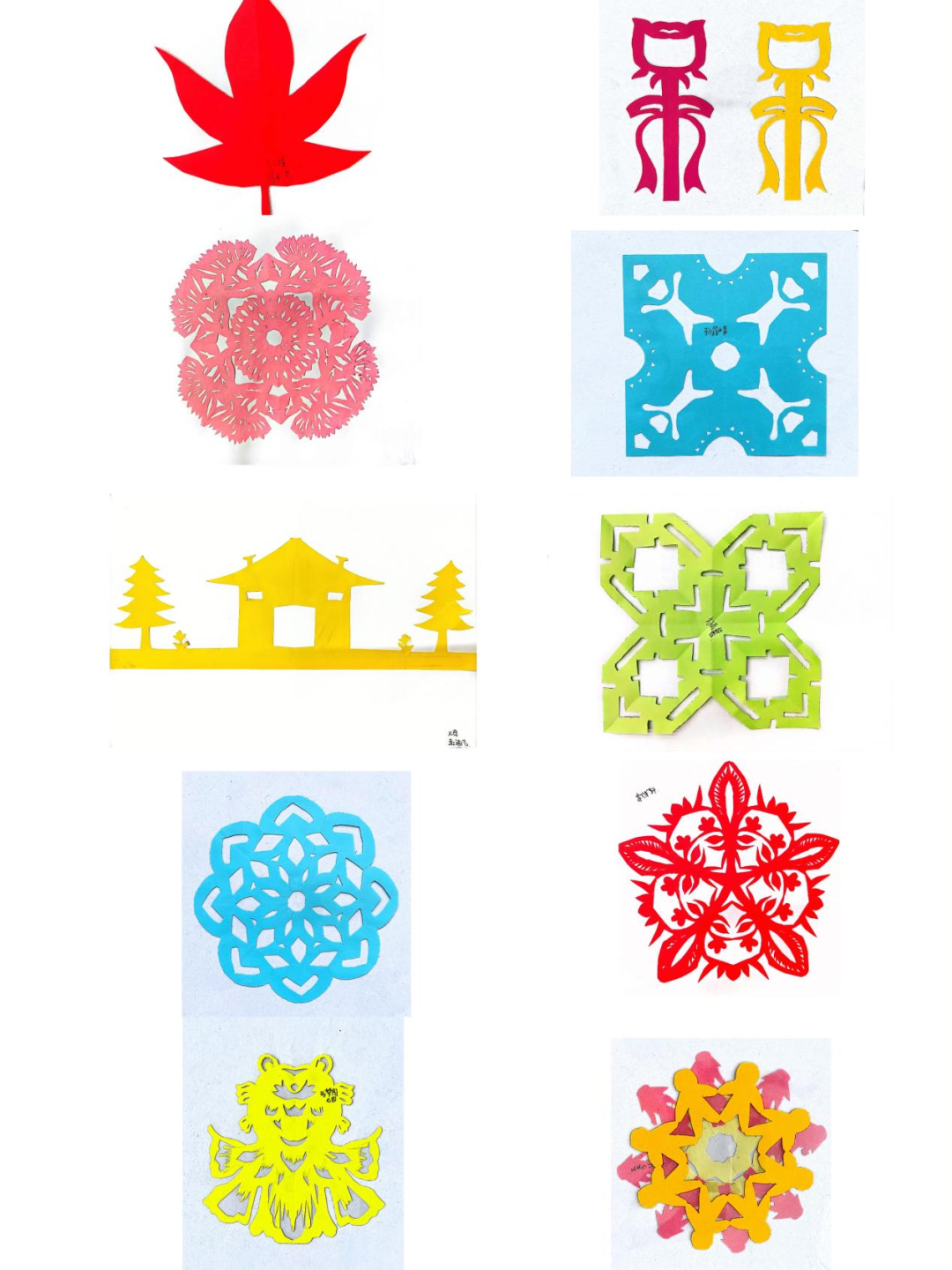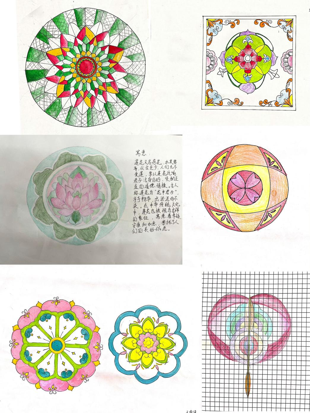 同学们统一把作品上交后,七年级数学备课组组织老师进行评选工作,最终一大批优秀作品脱颖而出。以下是本次七年级“轴对称作品设计”大赛部分优秀作品: