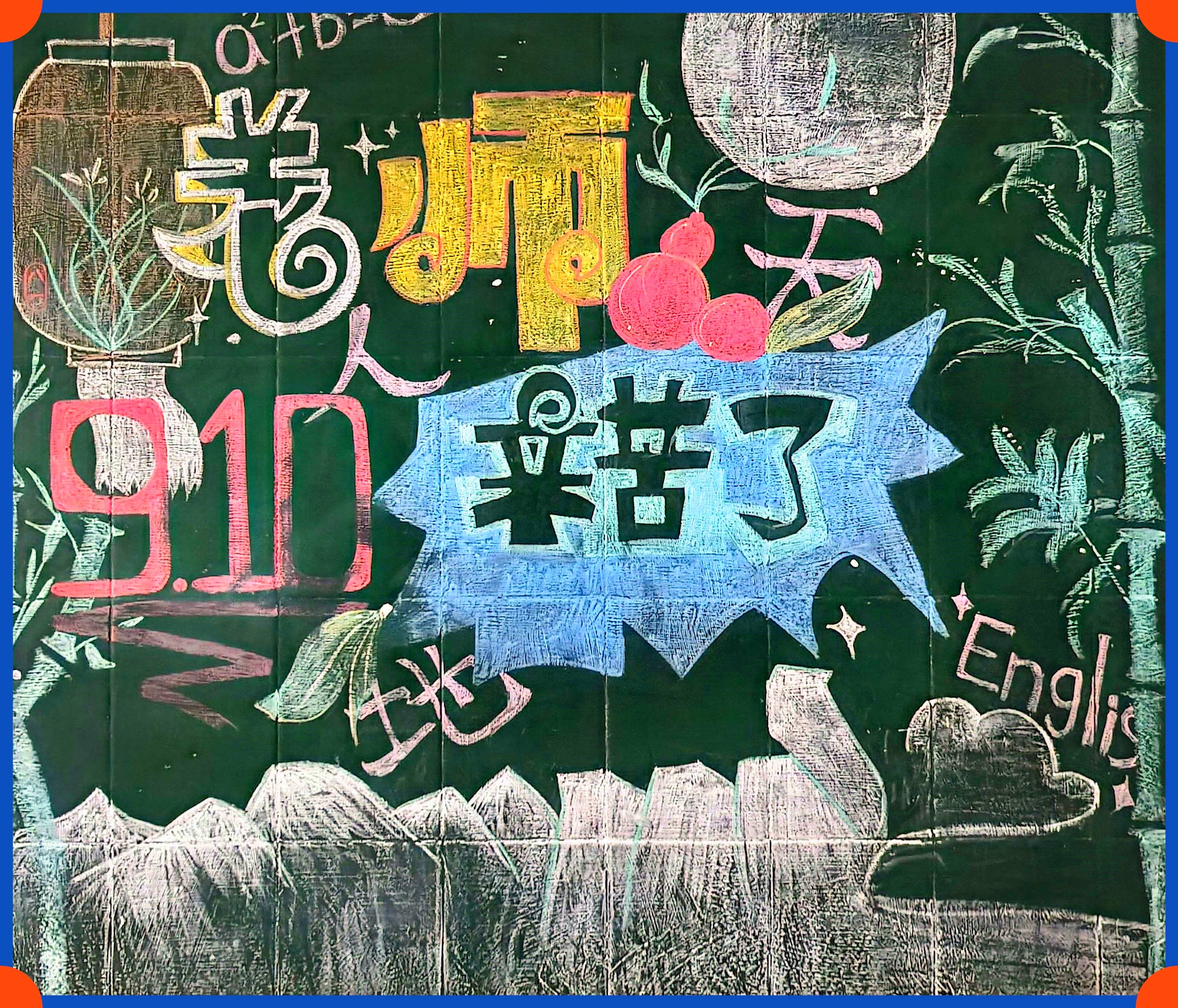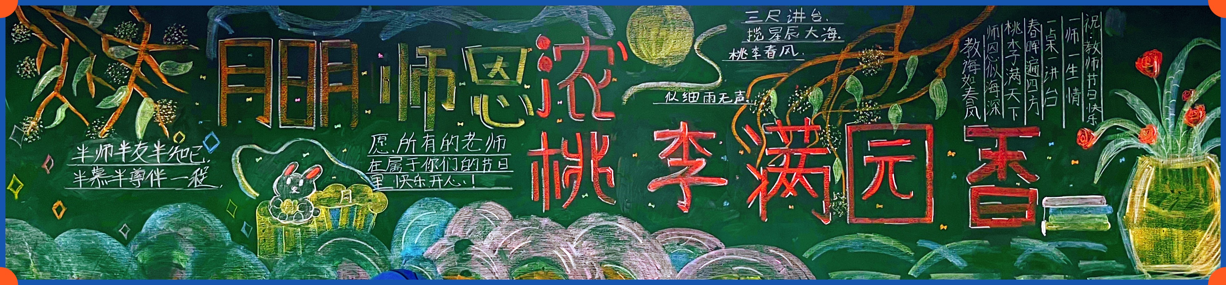 同学们怀着对老师崇高的敬意和满腔的热情,积极参与主题板报绘制。经过同学们精心策划,一幅幅构思新颖、主题鲜明、图文并茂的黑板报完美呈现在师生眼前,成为一道靓丽的班级风景线。在板报绘画过程中,同学们既展现了设计和绘画才能,也用笔墨丹青表达了对教师的感恩和祝福。