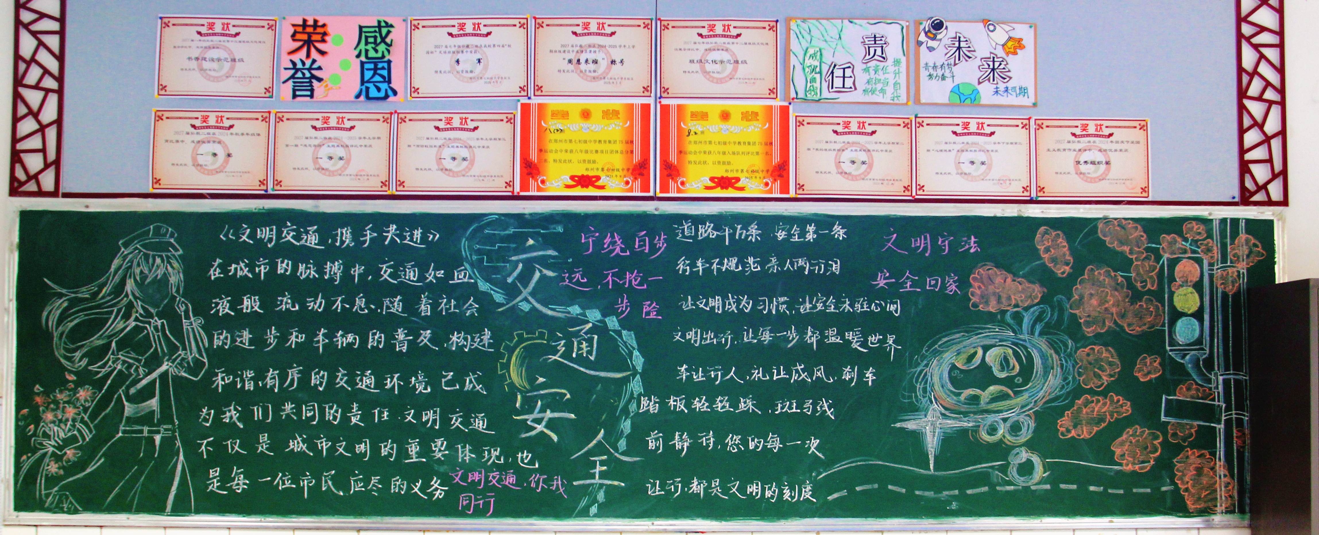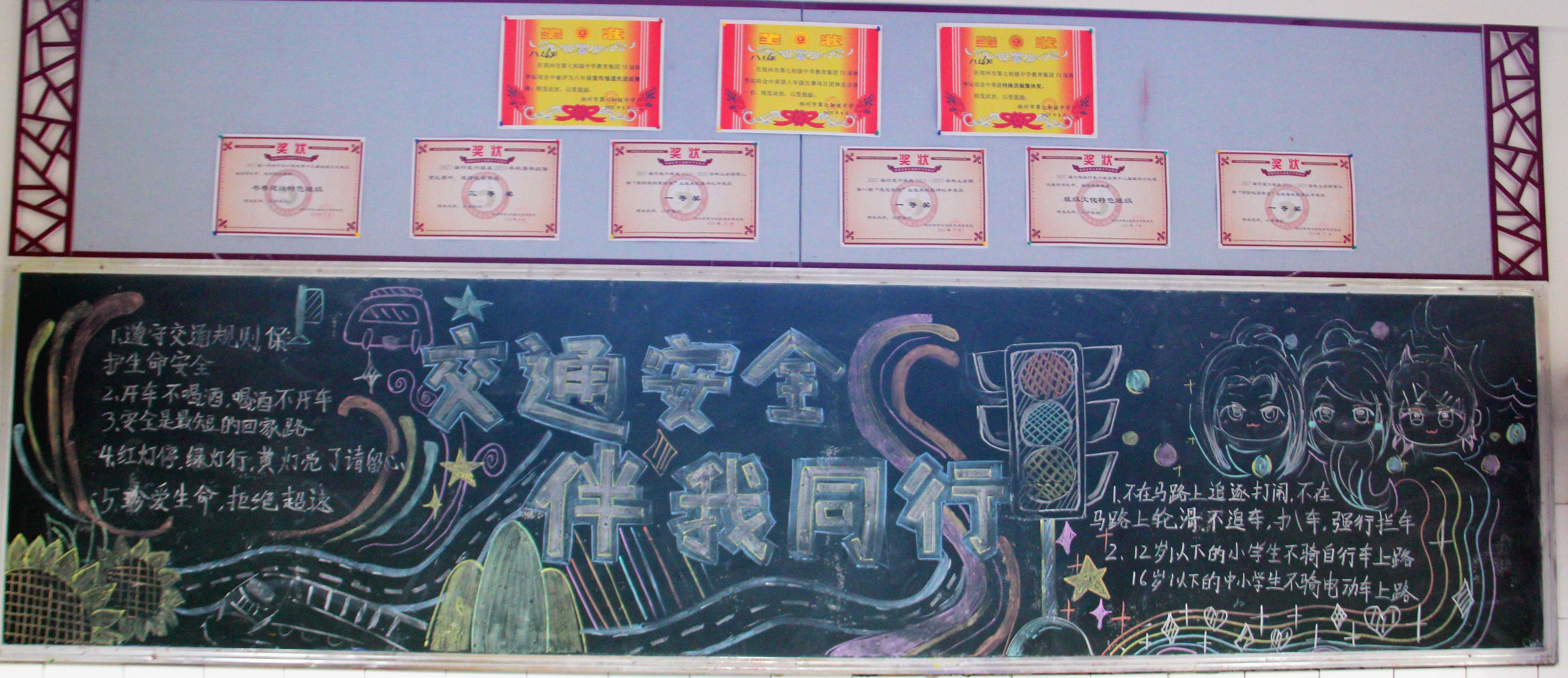 【主题板报】郑州七初东校区开展“交通安全 身边榜样”主题黑板报展评