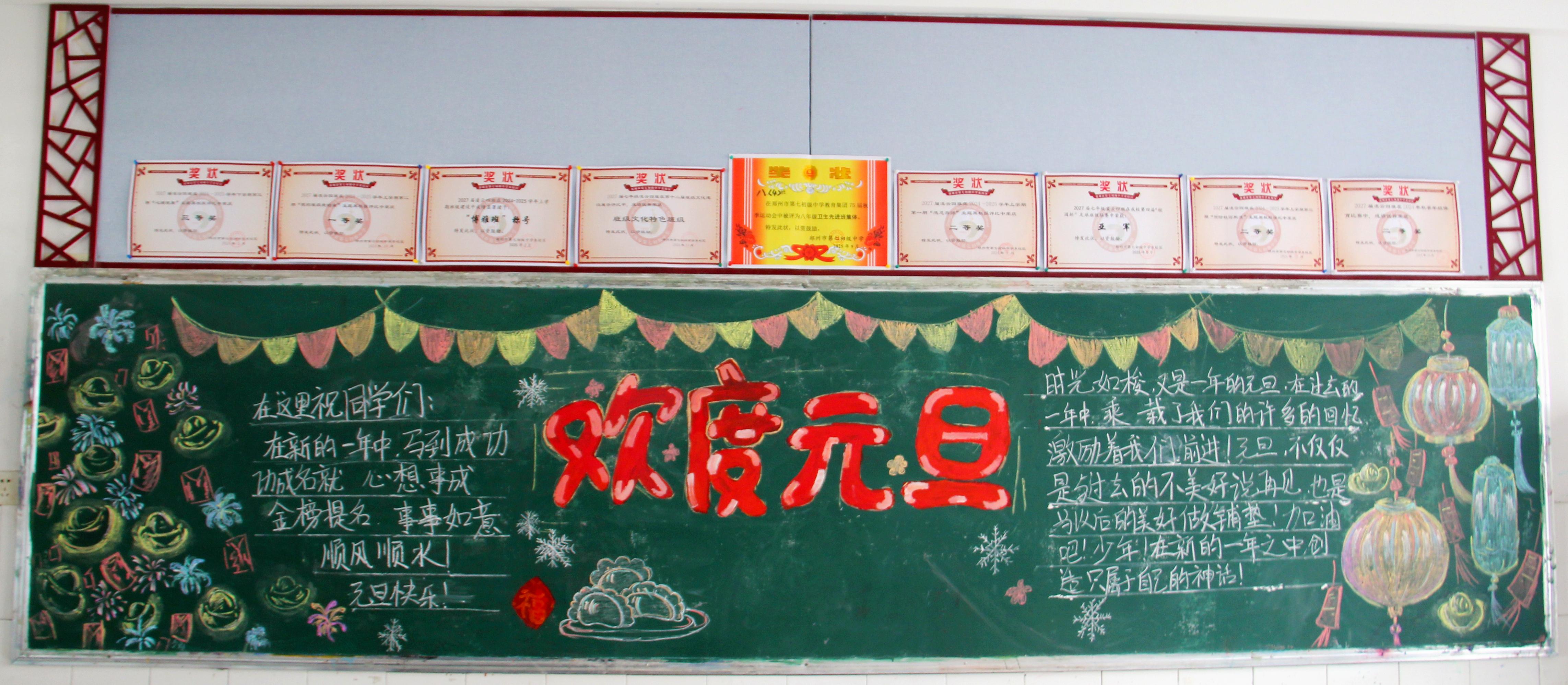 【主题板报】郑州七初东校区开展“惜时 迎新”主题黑板报评选活动