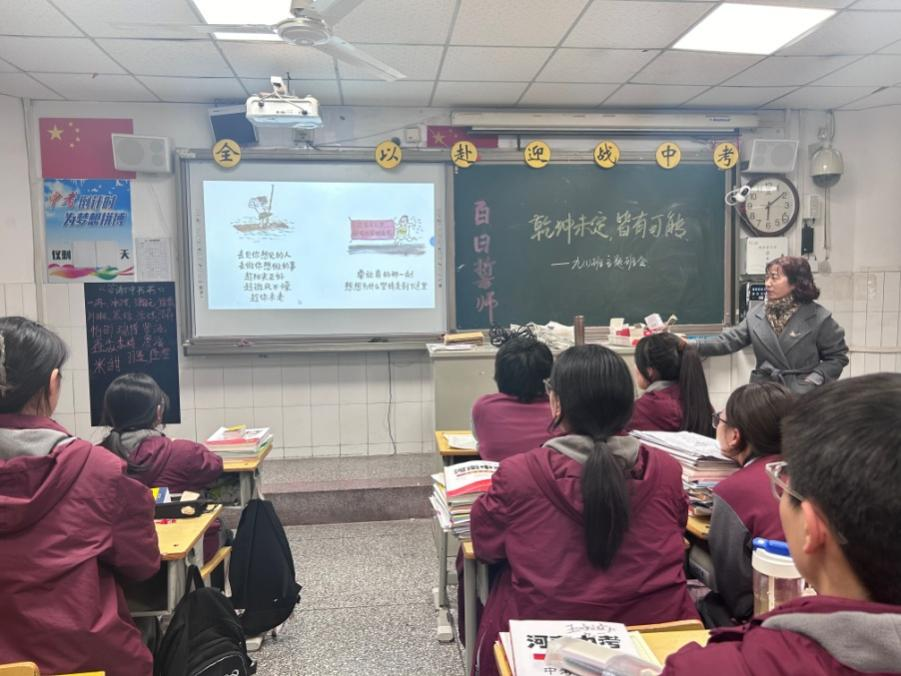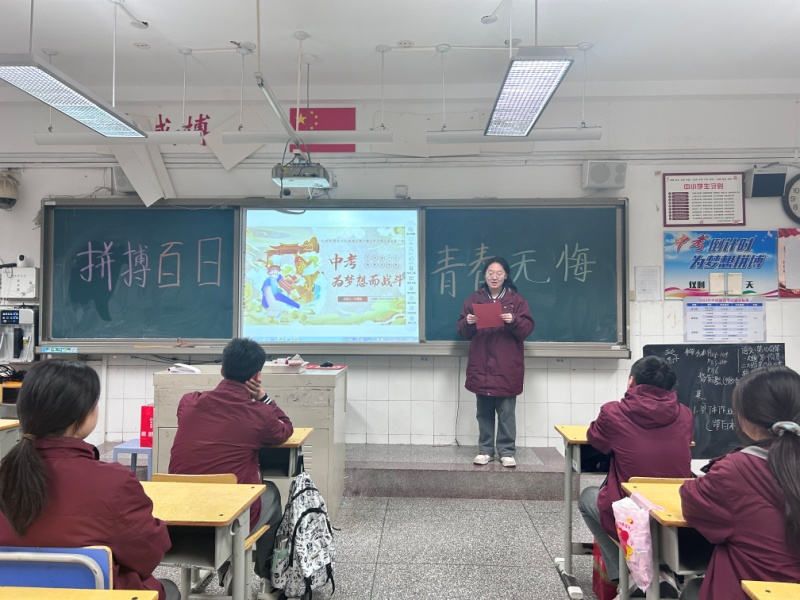 九年级各班主任老师们为此做了精心的准备。他们深情回顾了同学们三年来的成长历程,并为即将到来的中考给孩子们加油鼓劲。班主任们强调,中考是人生的重要挑战,也是实现梦想的关键一步,希望同学们珍惜最后的百日时光,以积极的心态、科学的方法和顽强的毅力迎接挑战,创造佳绩。
