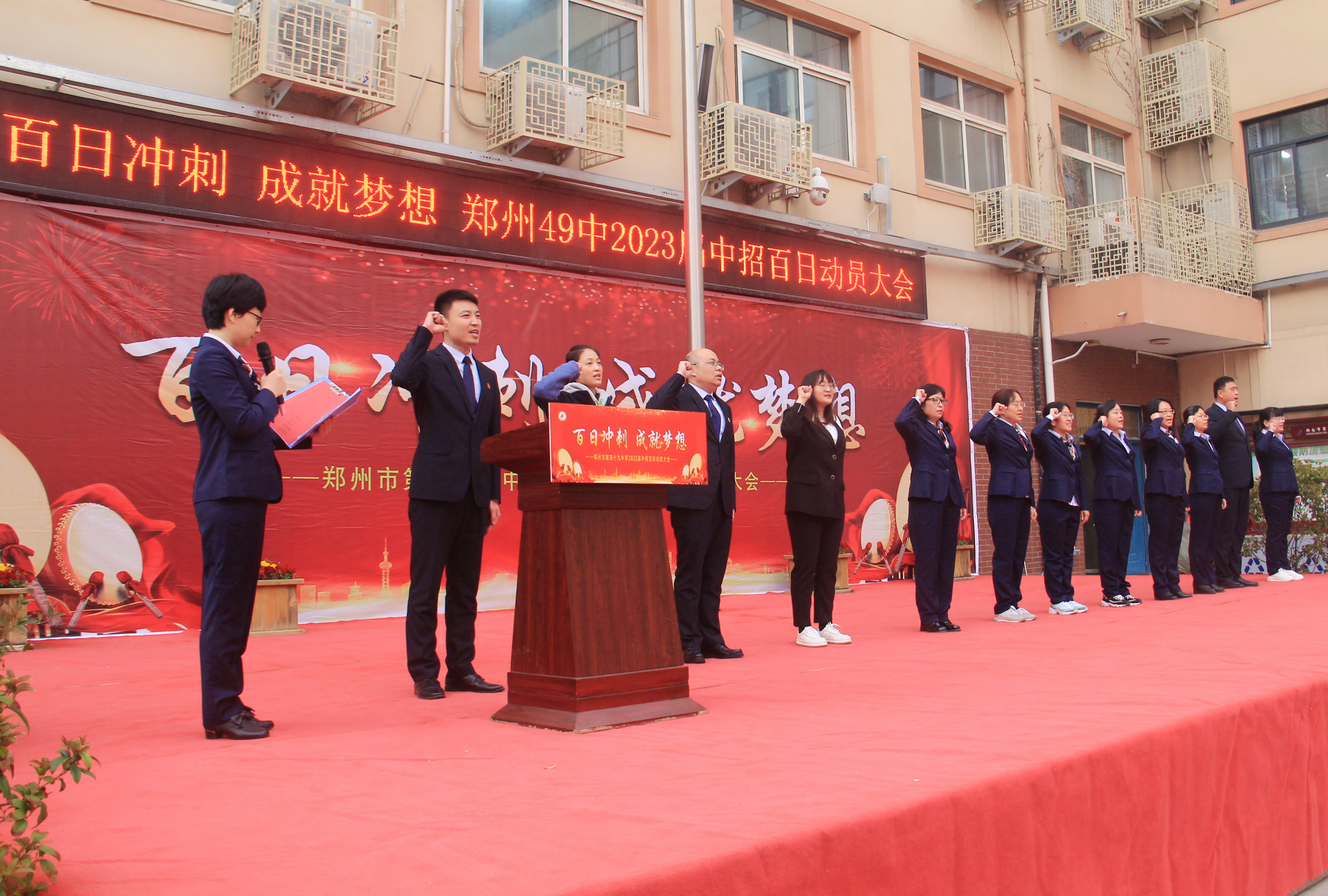 为更好地激发九年级学子的拼搏斗志,以积极的状态迎接中考,3月20日,郑州49中举行“百日冲刺 成就梦想”2023届中考百日动员大会。