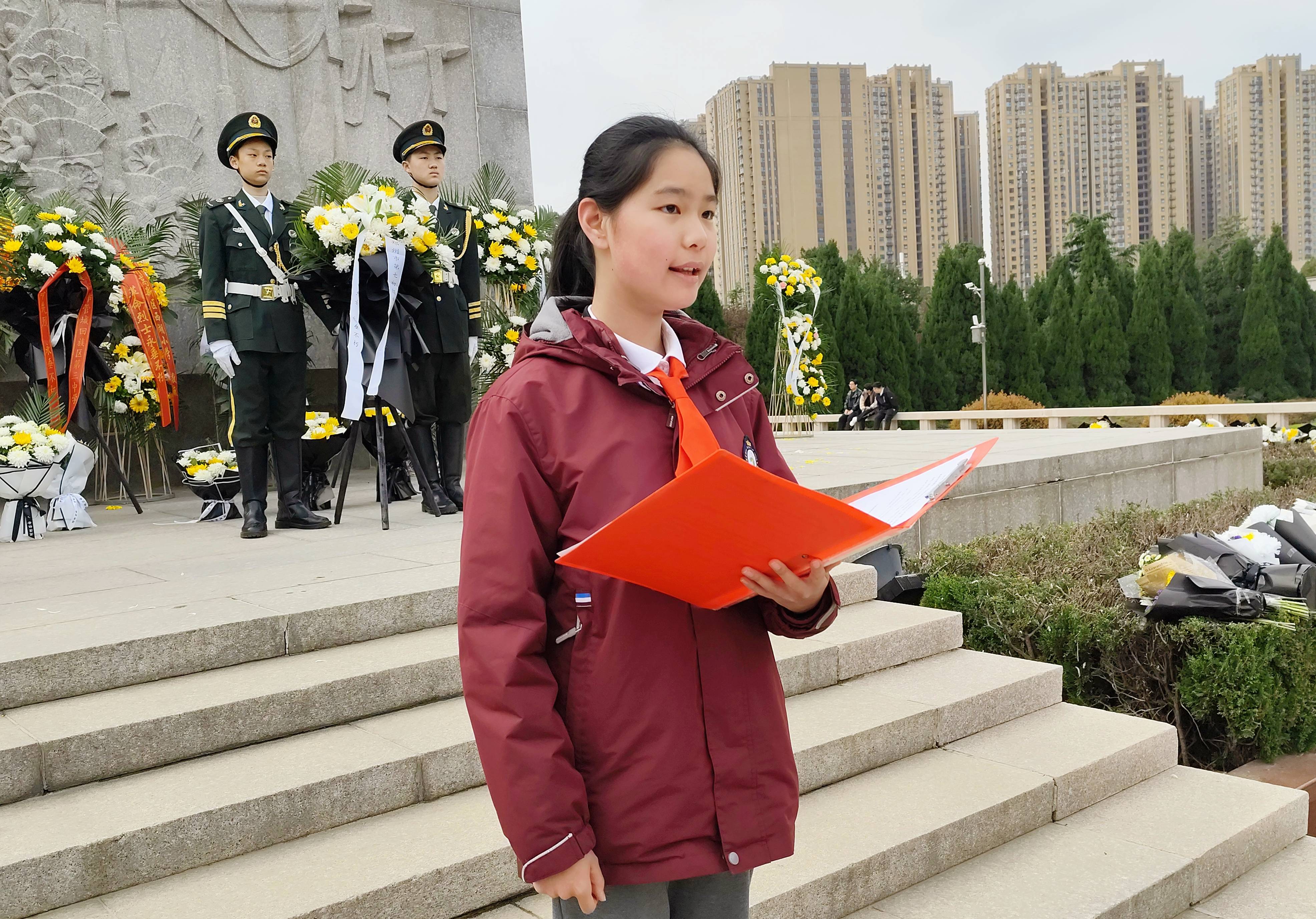 张茁楷同学带领大家在烈士纪念碑前庄严宣誓