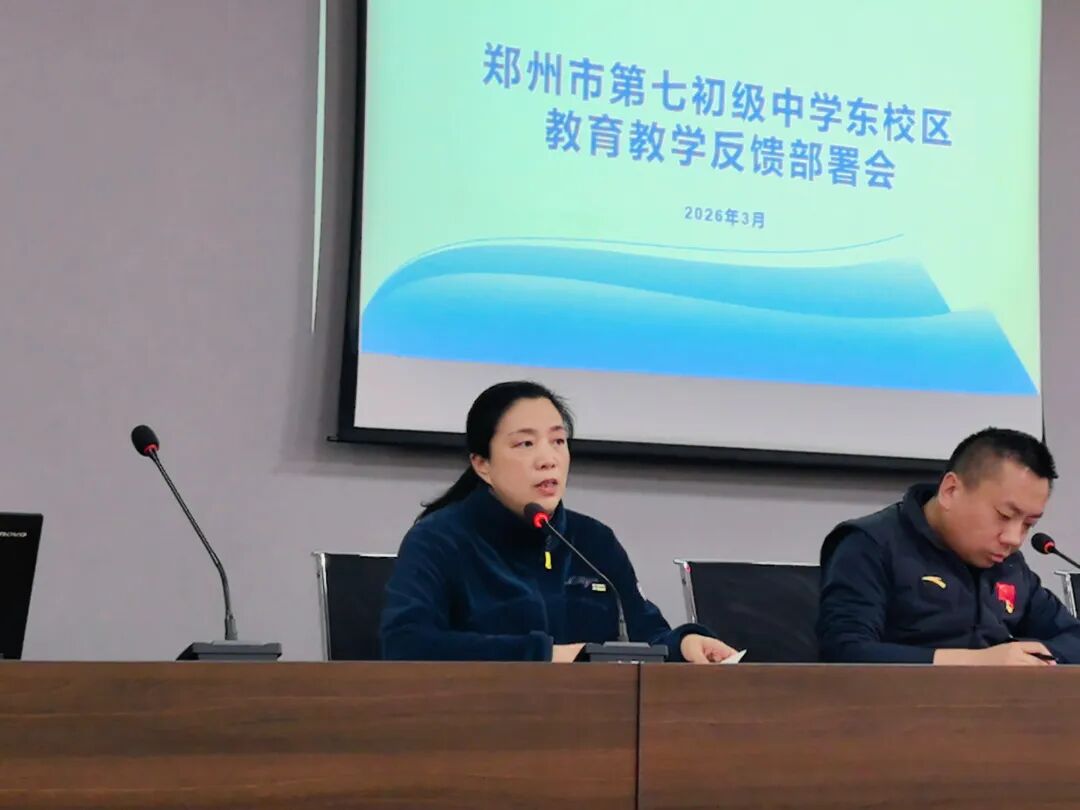 为进一步夯实教学根基,强化校园安全管理,提升教育教学质量,部署下一阶段重点工作,3月23日下午,郑州市第七初级中学东校区召开教育教学反馈部署会。全体教职工参会,会议围绕安全、党建、教学、青年教师培养等核心工作进行全面部署,为新学期教育教学工作指明方向、凝聚共识。