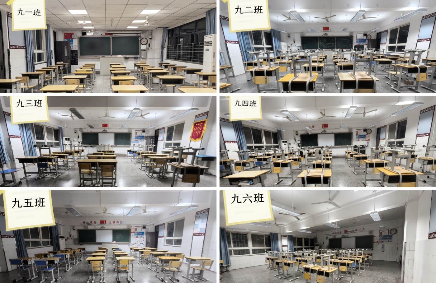 毕业班文明离校,同学们认真整理擦拭课桌椅。