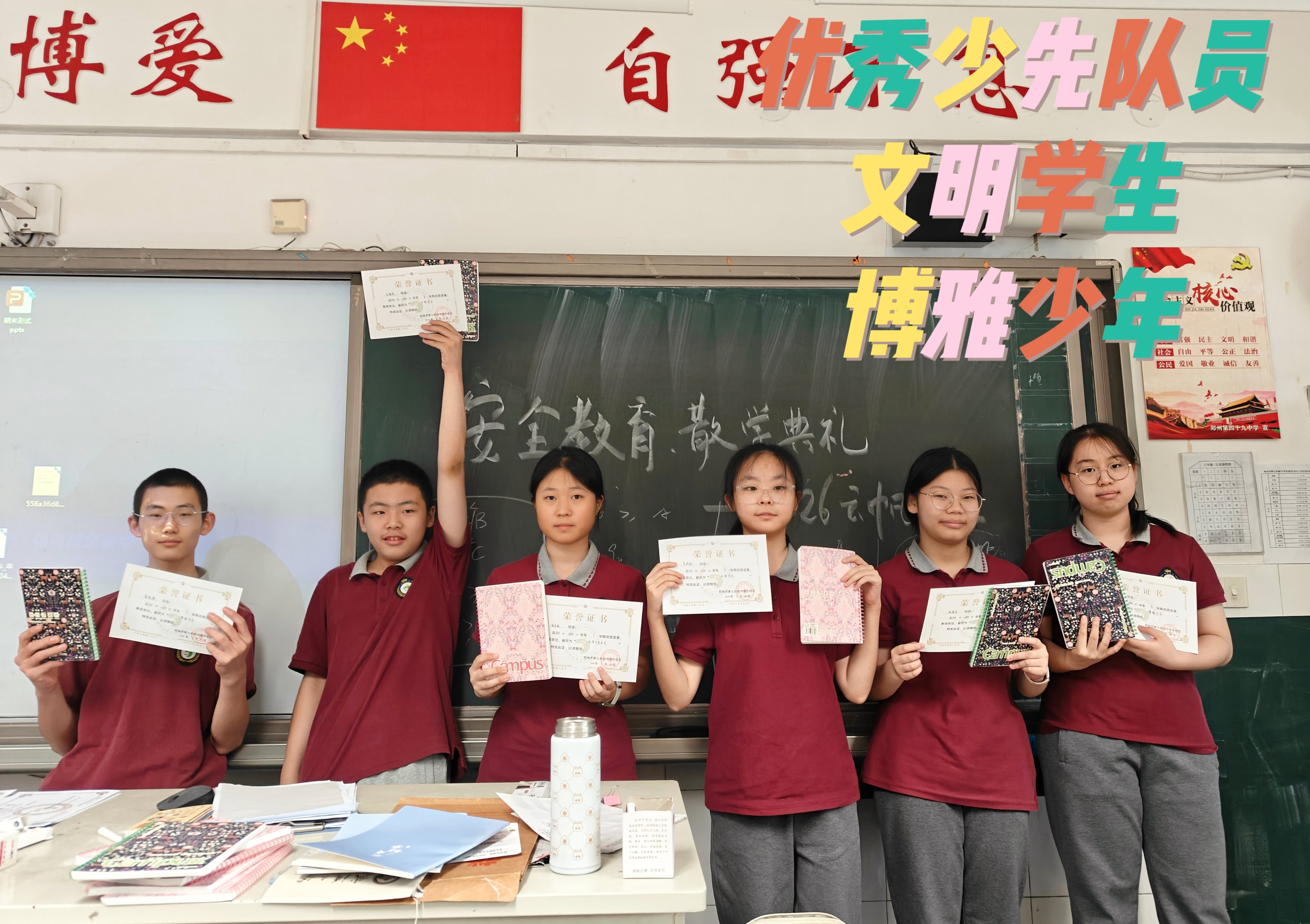 郑州七初东校区,通过班长说班、总结表彰、暑期生活指导等活动,丰富散学典礼形式,做好假期安排,保障学生的生命安全和健康成长。
