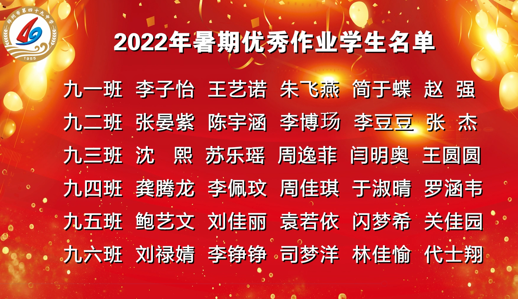 九年级优秀暑期作业学生名单