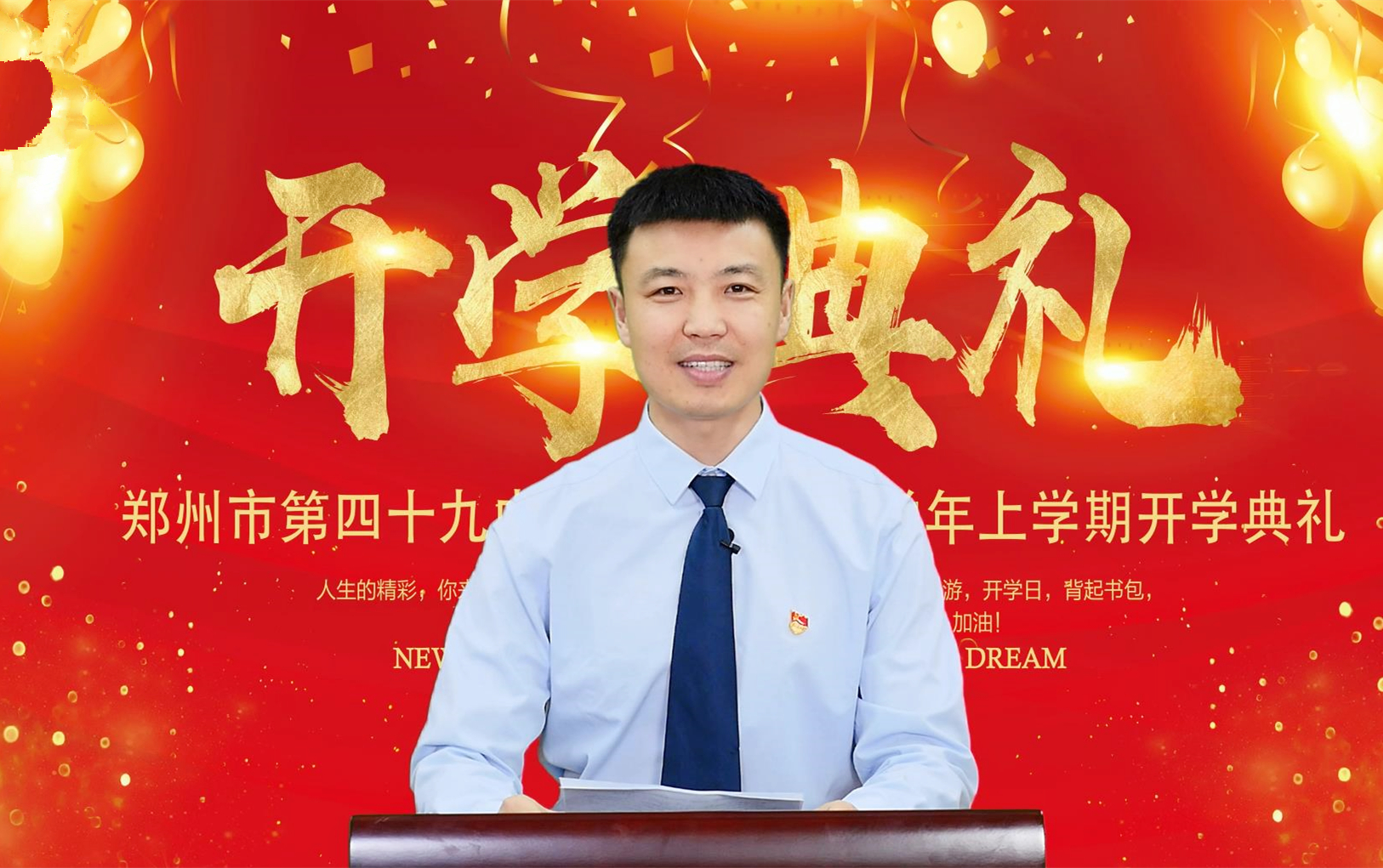 新的学期,新的开始,新的希望,8月29日上午,郑州49中举行2022-2023学年上学期开学典礼,本次典礼以网络直播的形式开展,全体师生及家长通过智慧平台同步参与。