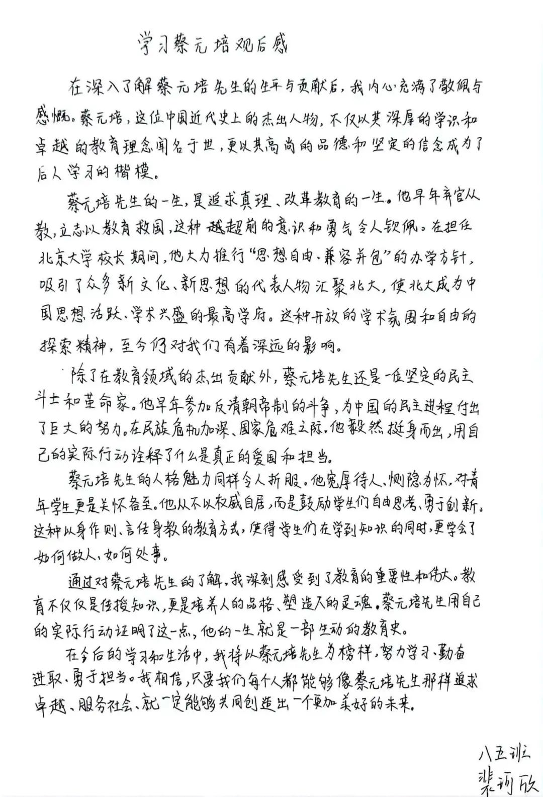 八(5)班裴可欣观《大师》蔡元培有感