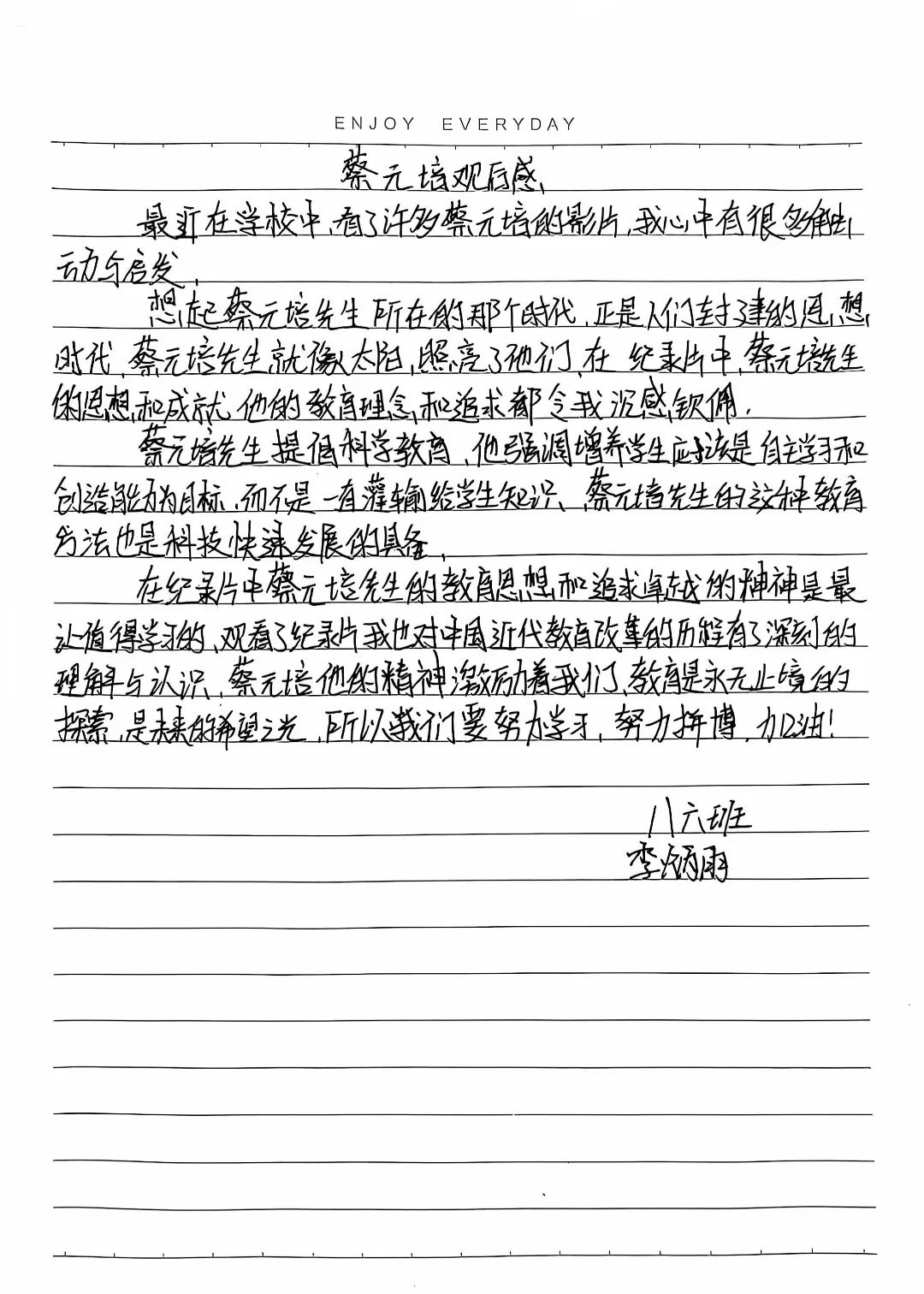 八(6)班李炳雨观《大师》蔡元培有感