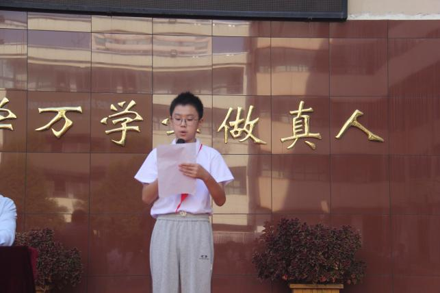 随后,七二班学生代表郑嘉铭昂首登台,发表了振奋人心的讲话;七一班学生代表申昊瀚领誓,带领全体同学举起右拳,庄严宣誓。