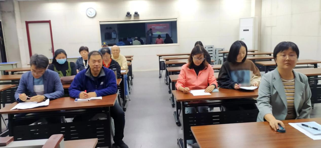 七初东校区九年级全体教师在录播教室参加质量分析会