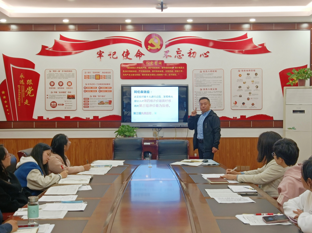 党支部书记楚东升在七年级质量分析会上,高度赞扬了七年级教师的敬业精神,并从心理学角度提出专业指导,通过“阿伦森效应”举出实例用正确、高效的方法去激励学生学习,挖掘学生优点,以赏识教育鼓励学生不断进步,提高师生“精气神”!