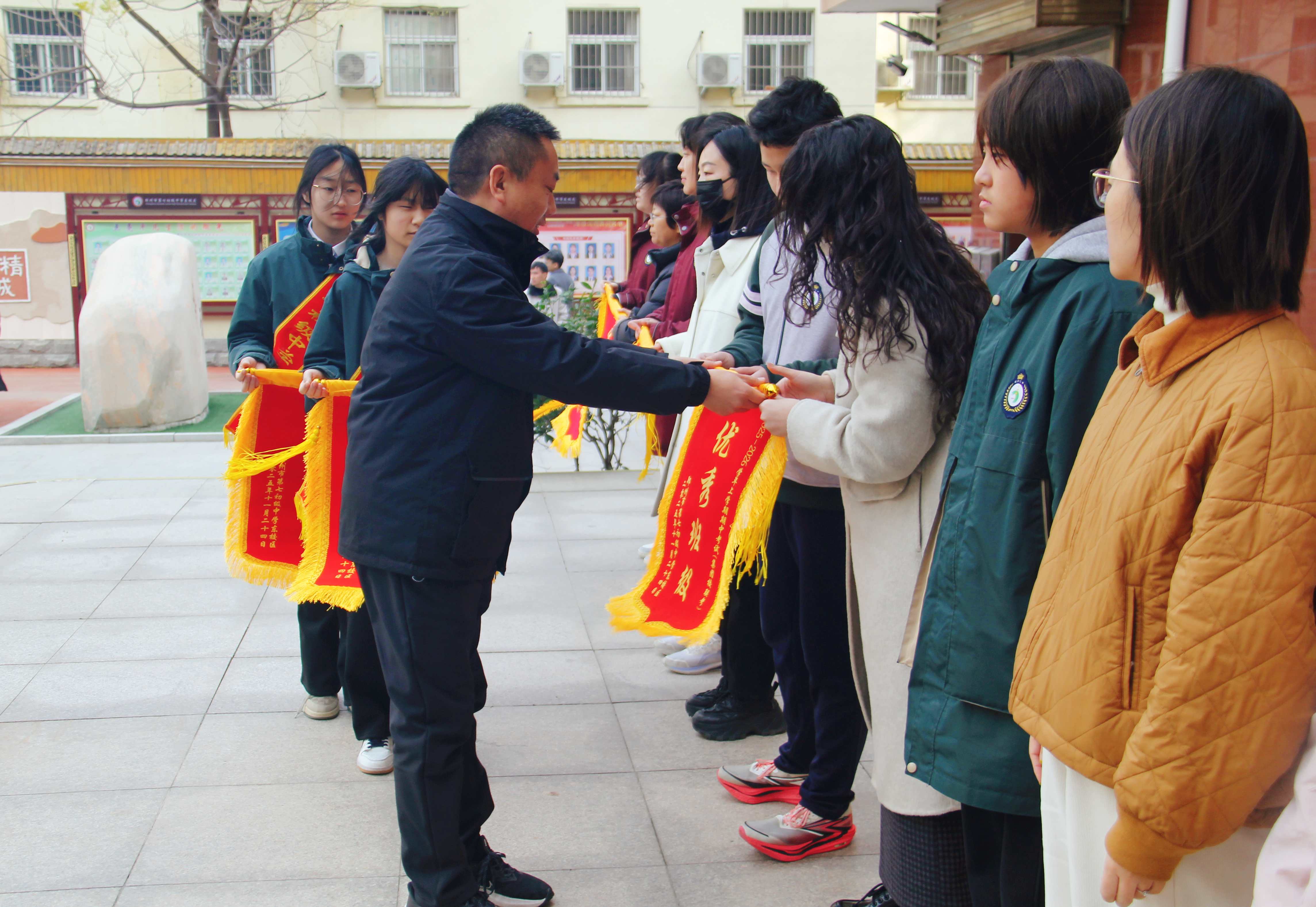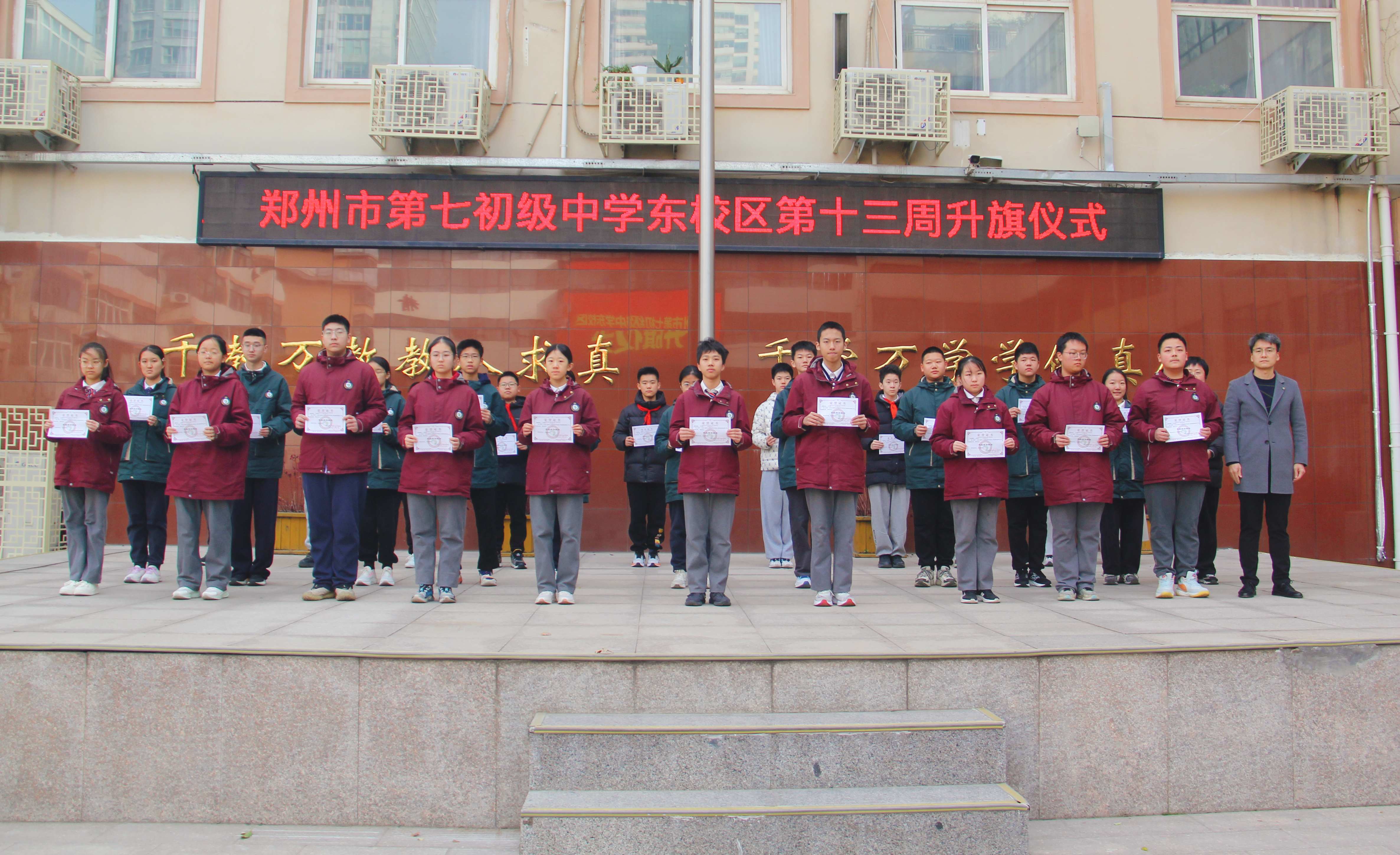 为表彰优秀、激励全体师生锐意进取,11月24日,郑州市第七初级中学东校区举行2025—2026学年上学期期中表彰大会,对涌现出的优秀班级、教师及学生进行集中表彰。