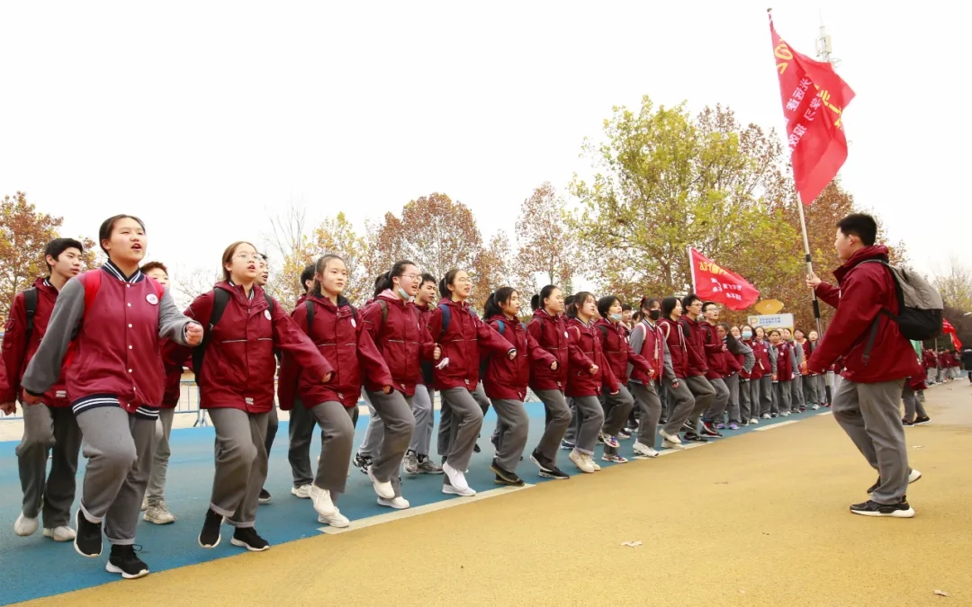早上7点,九年级全体师生排着整齐的队伍在校操场举行动员仪式,拓展教官为各班授旗,年级组长葛向锋做动员讲话:同学们,用心去看看壮美的黄河,看看同伴的笑脸,用心感谢师长陪伴和同学的搀扶,用心喊出最真诚的成长誓言。
